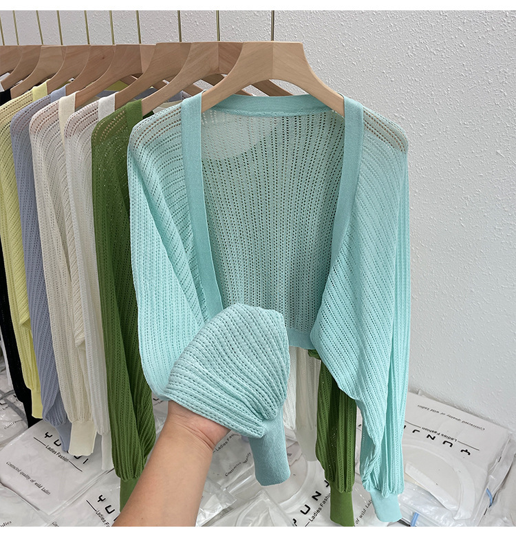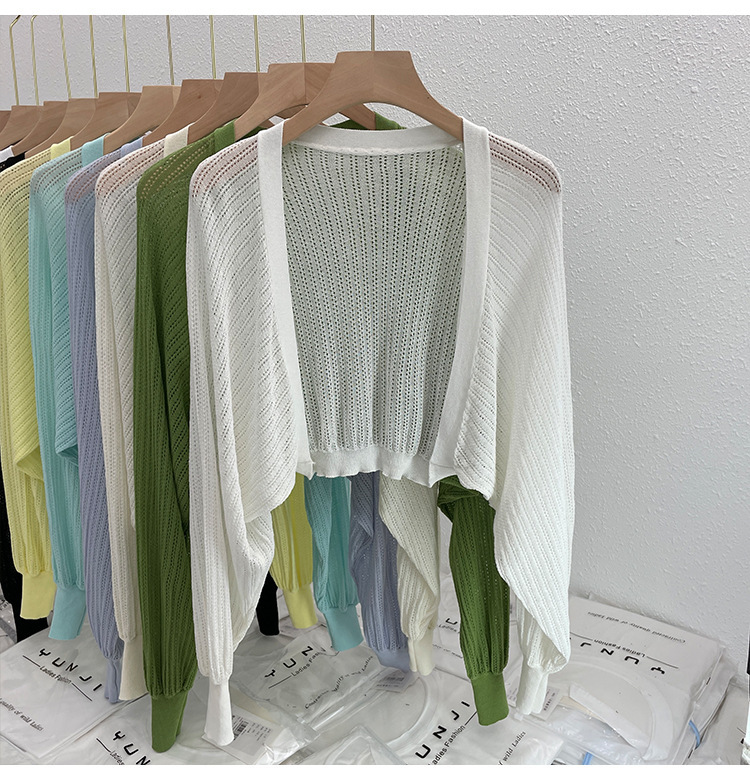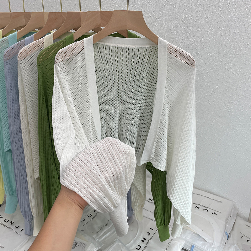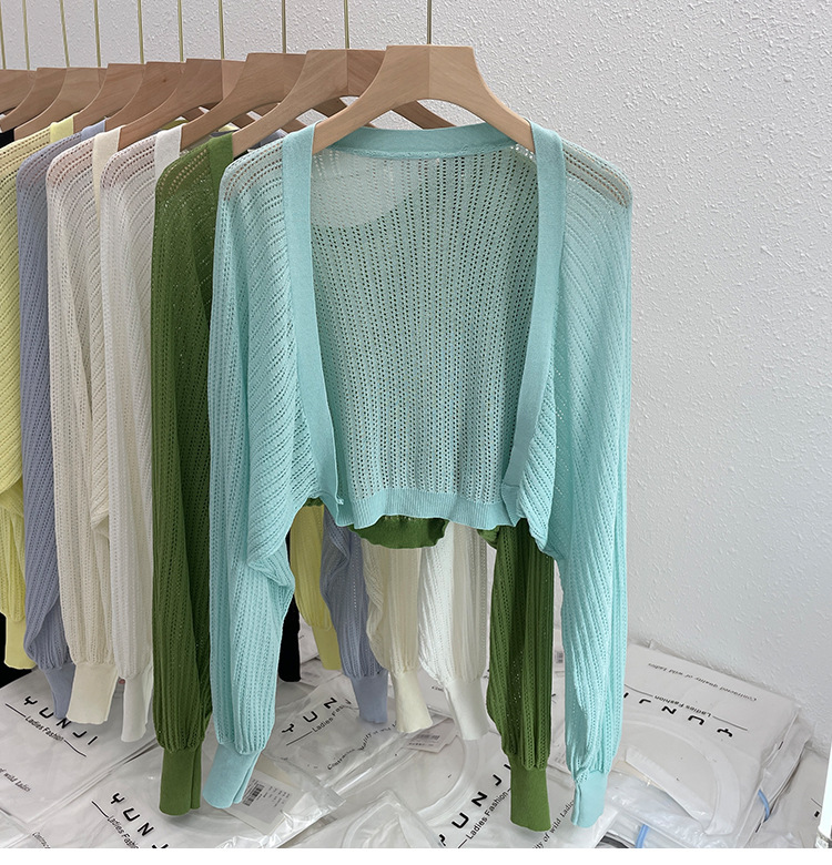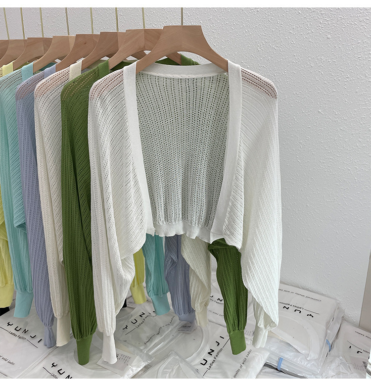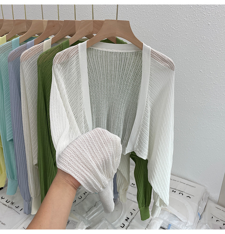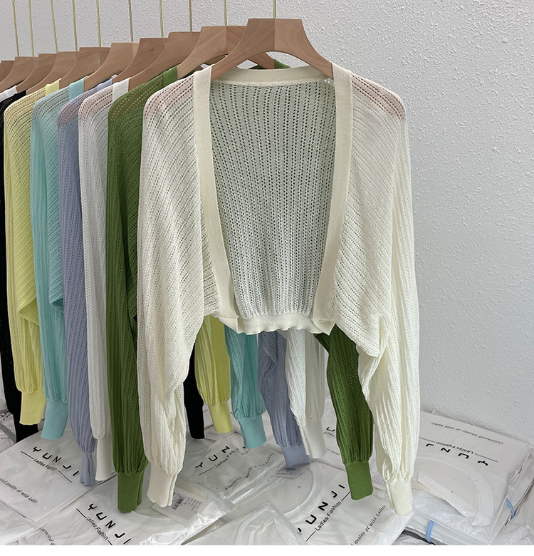 니트 가디건 스몰 코트 여성용 겉옷 에어컨 자외선 차단제 블라우스 랜턴 슬리브 짧은 탑 봄과 여름 얇은 느슨한스토어 가기