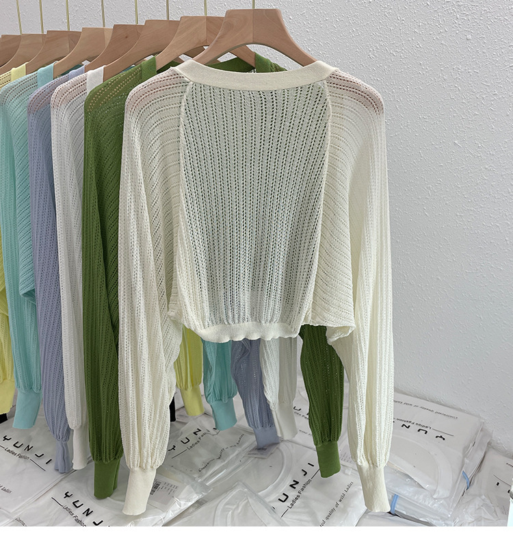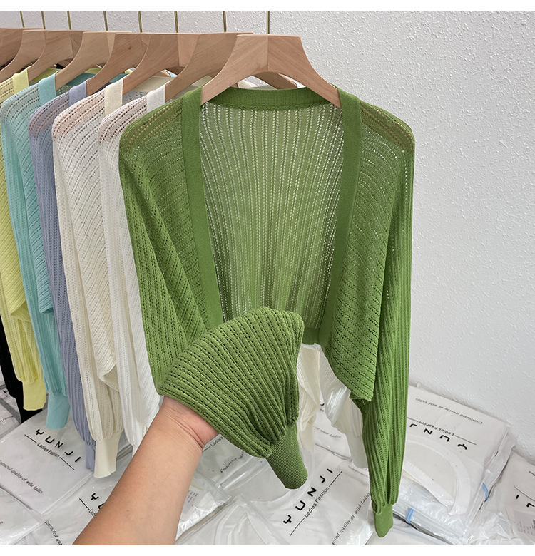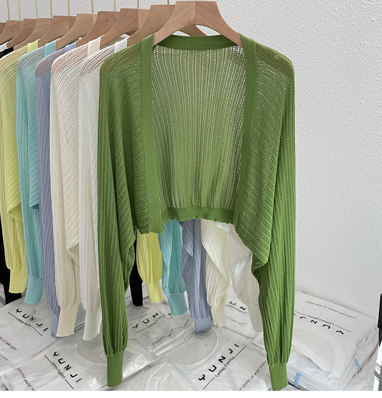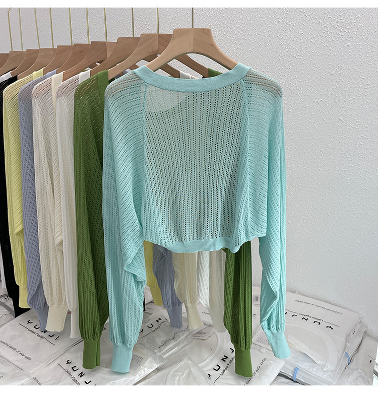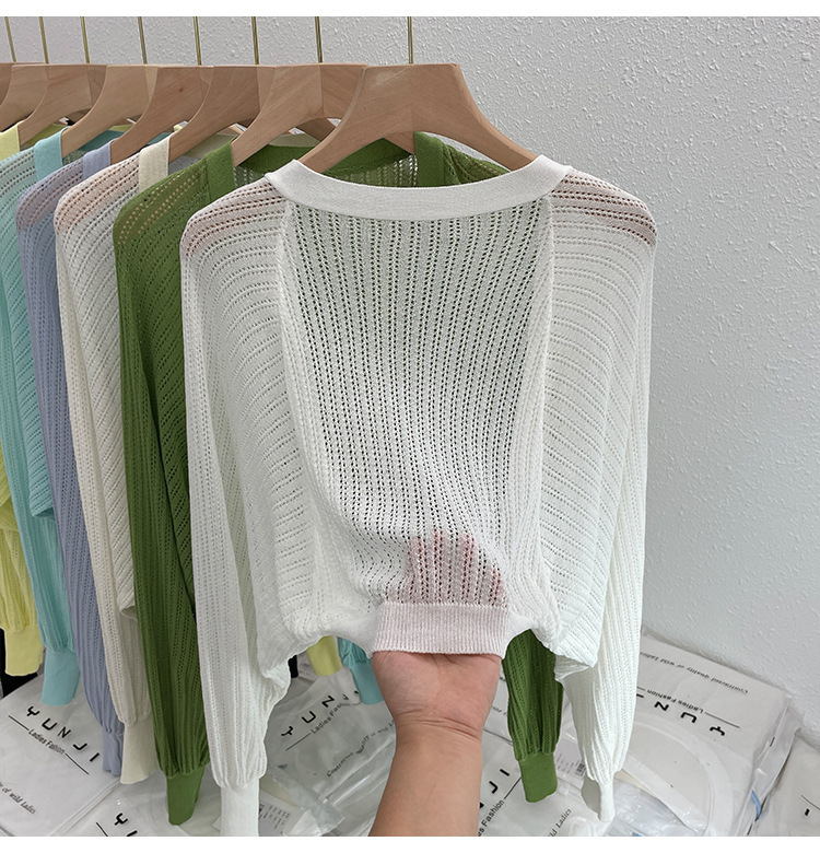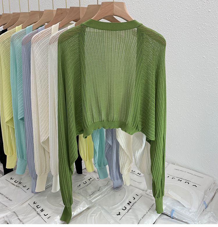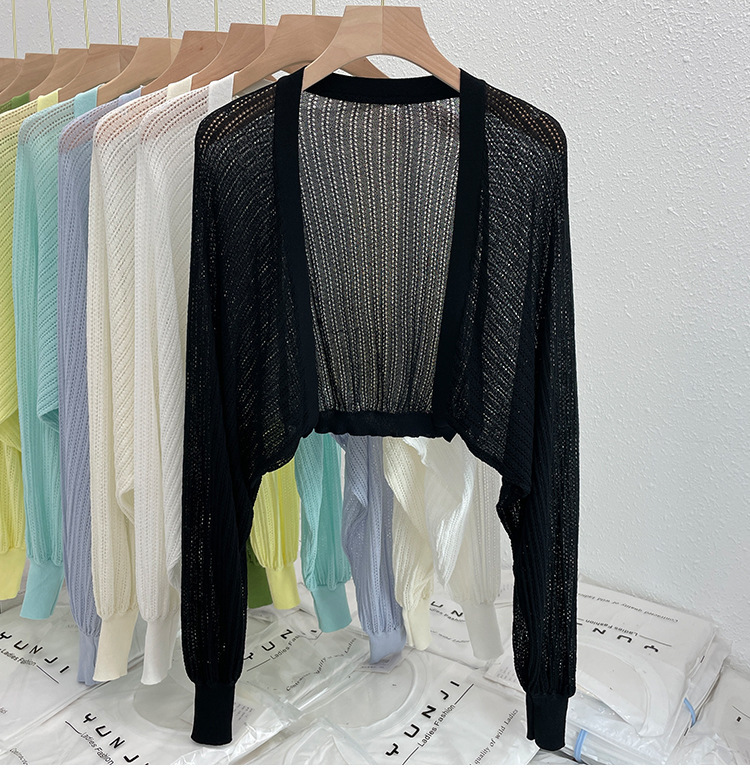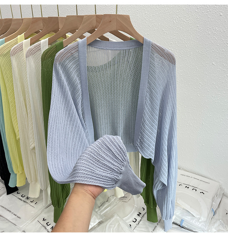 니트 가디건 스몰 코트 여성용 겉옷 에어컨 자외선 차단제 블라우스 랜턴 슬리브 짧은 탑 봄과 여름 얇은 느슨한스토어 가기