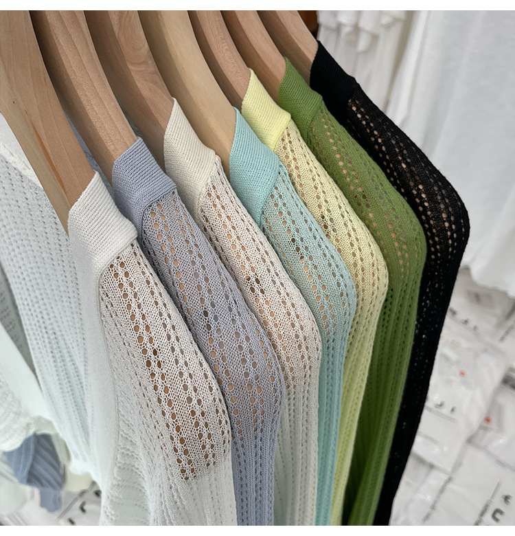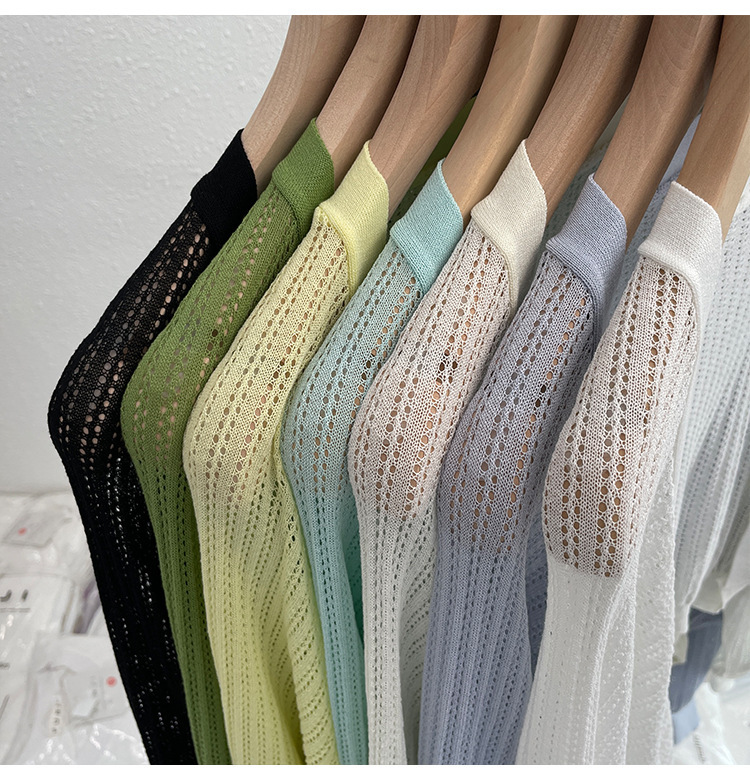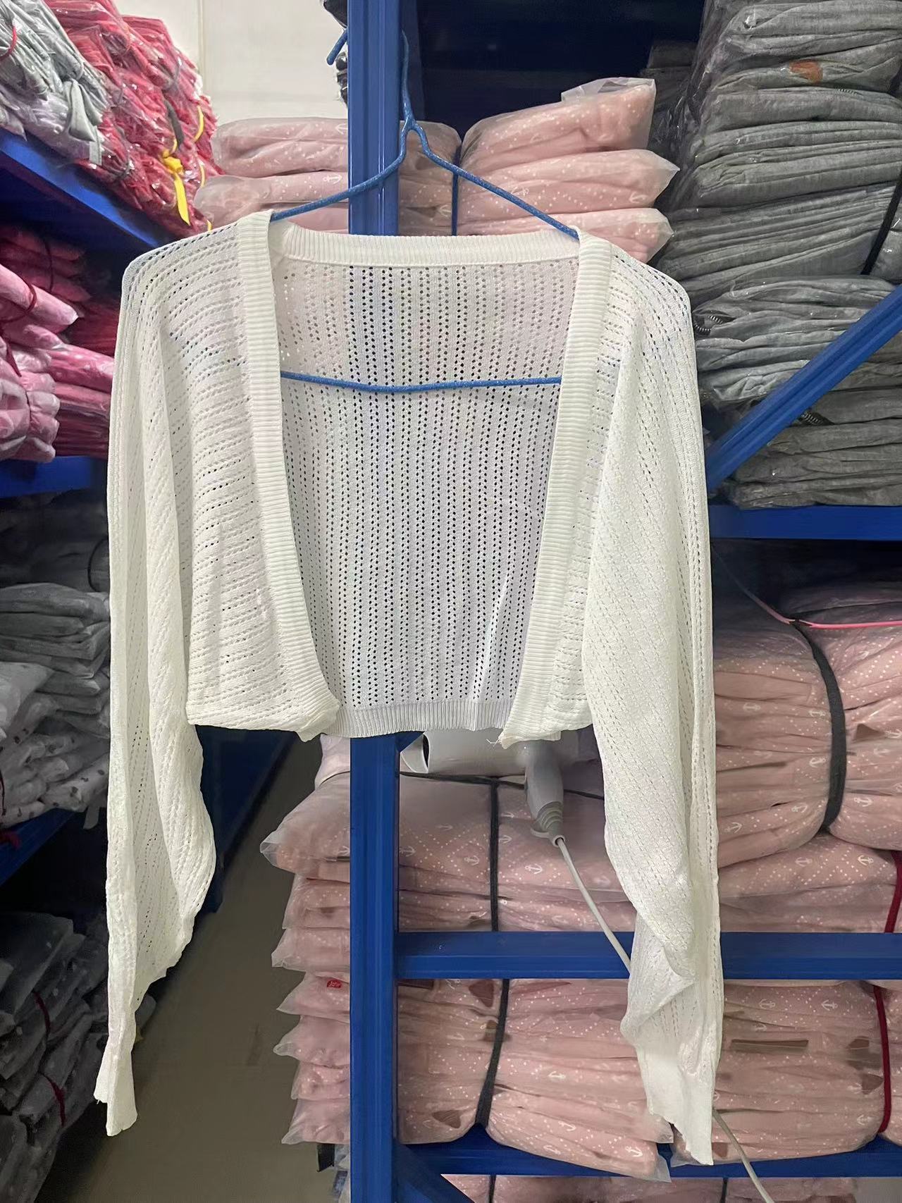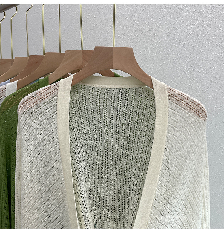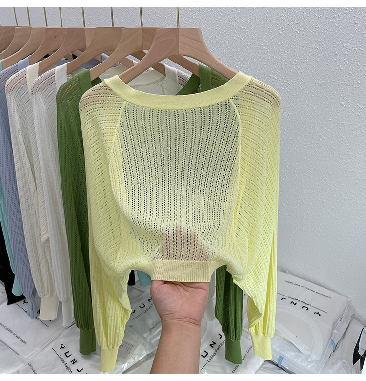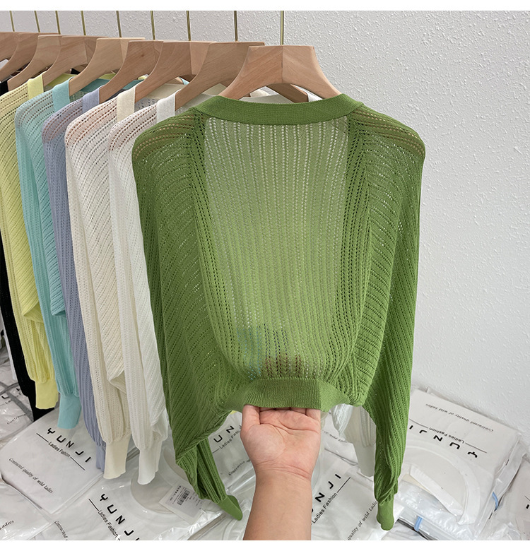 니트 가디건 스몰 코트 여성용 겉옷 에어컨 자외선 차단제 블라우스 랜턴 슬리브 짧은 탑 봄과 여름 얇은 느슨한스토어 가기