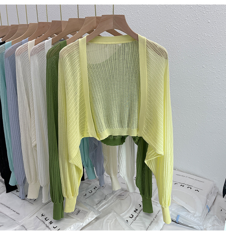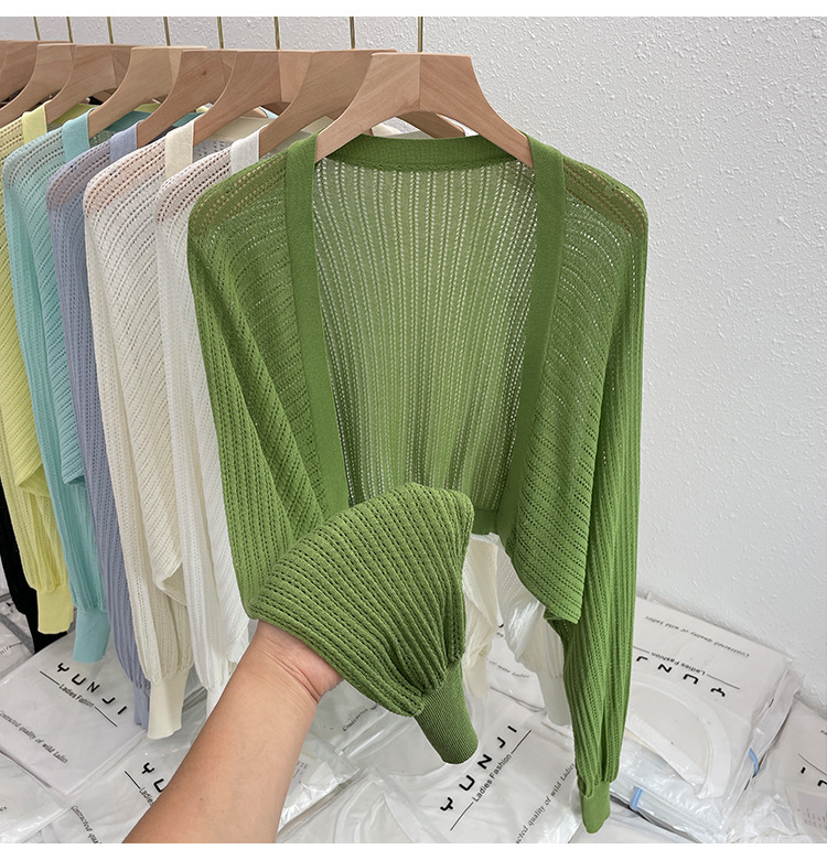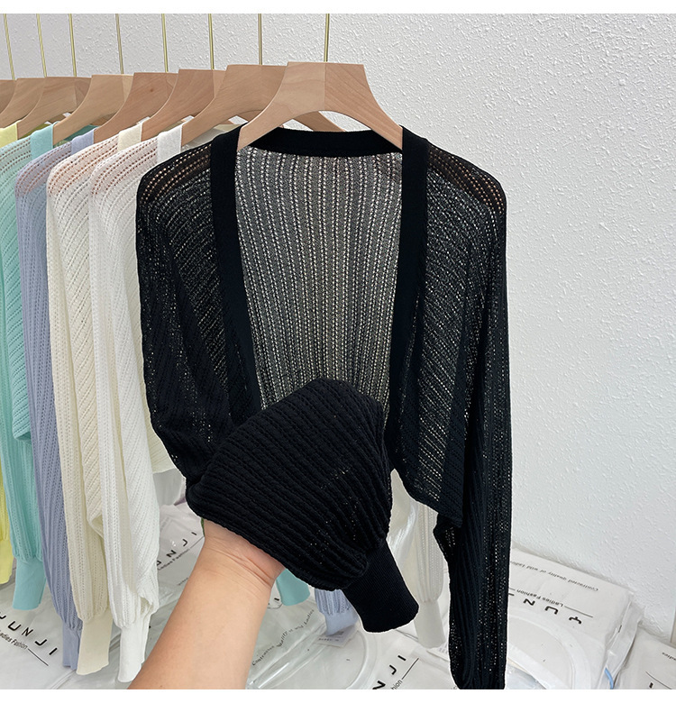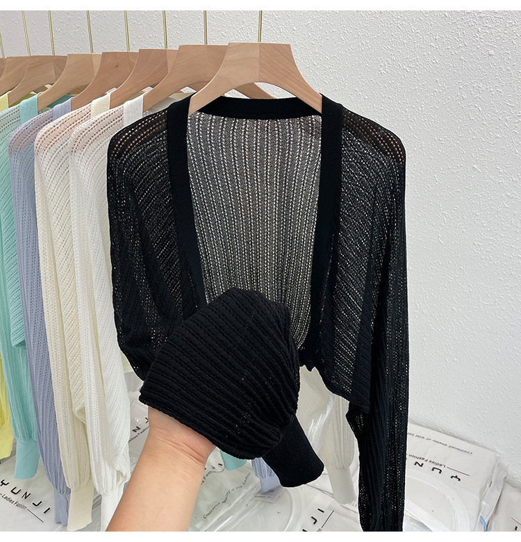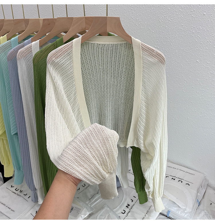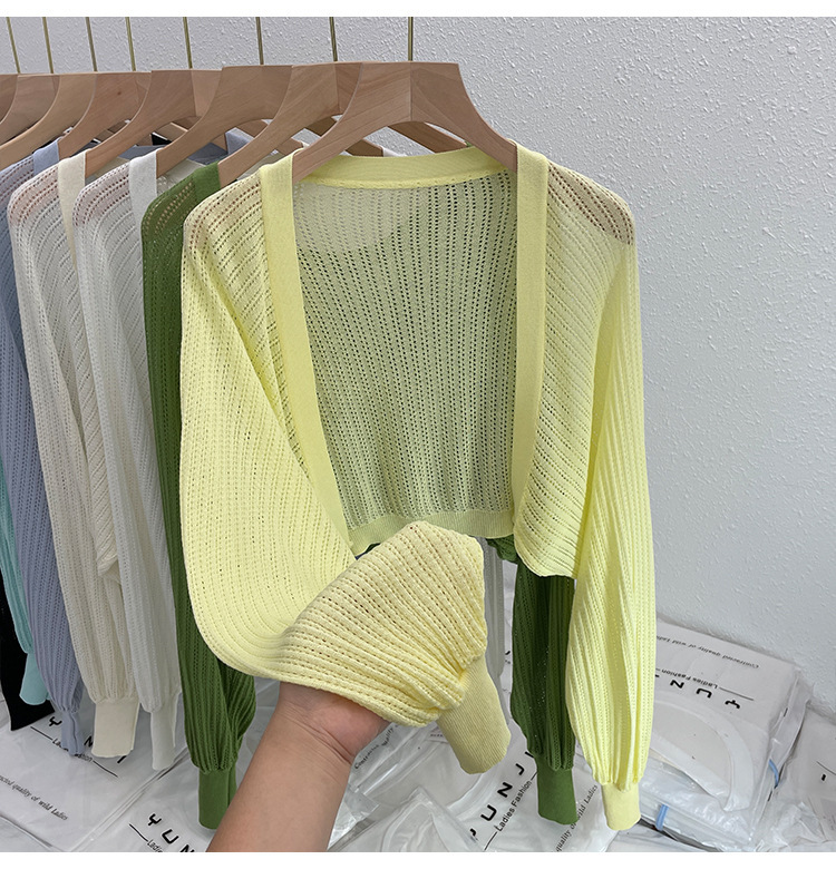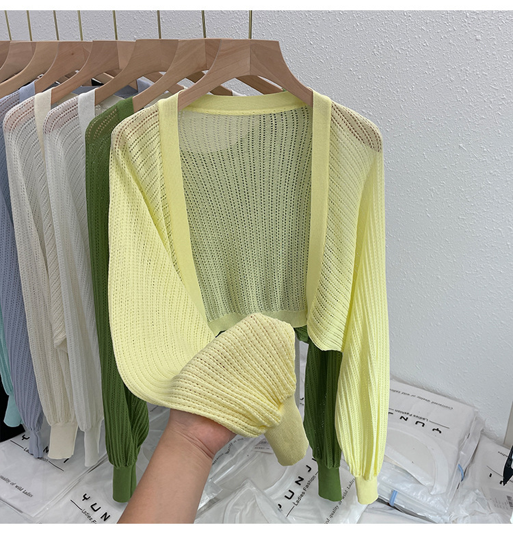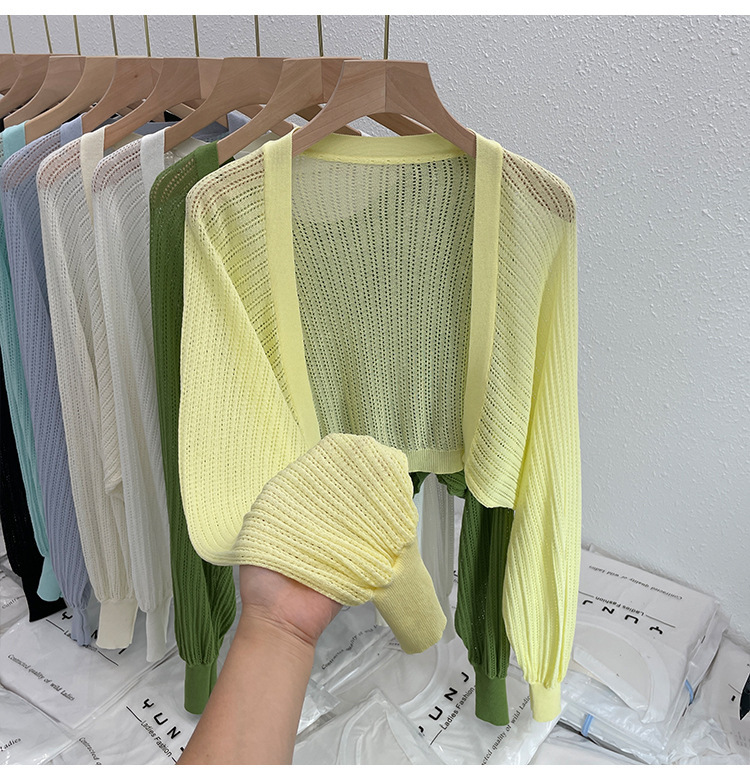 니트 가디건 스몰 코트 여성용 겉옷 에어컨 자외선 차단제 블라우스 랜턴 슬리브 짧은 탑 봄과 여름 얇은 느슨한