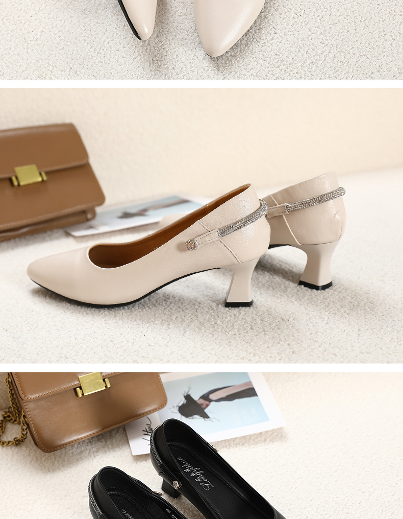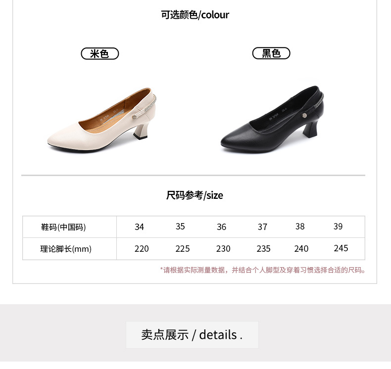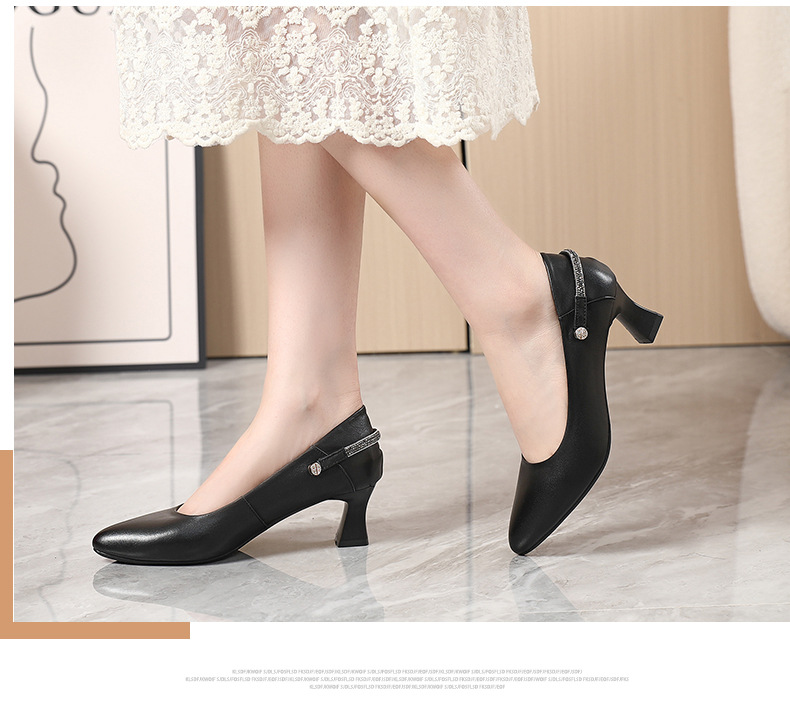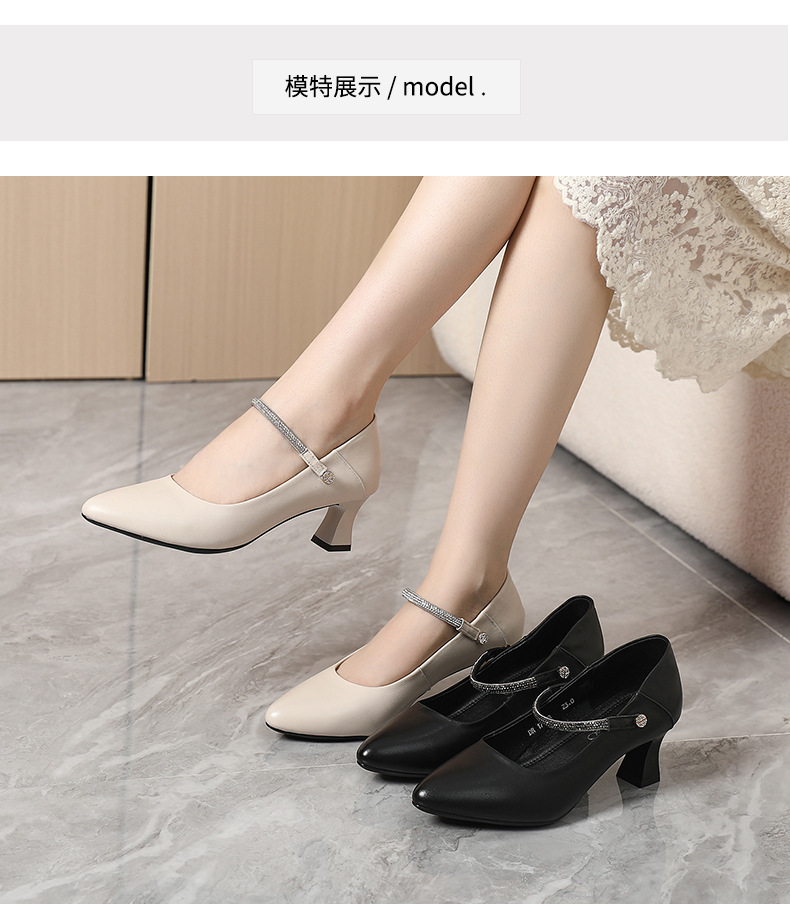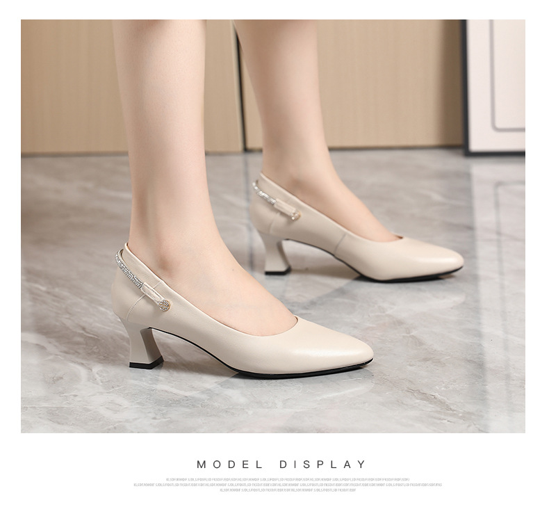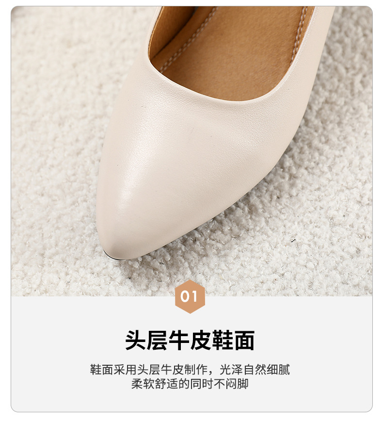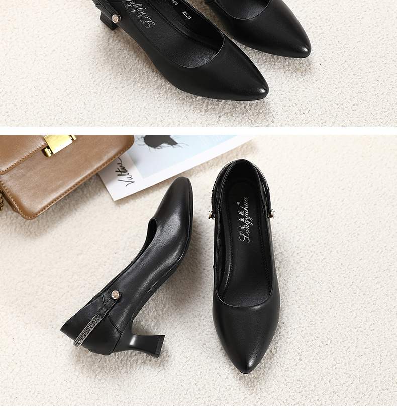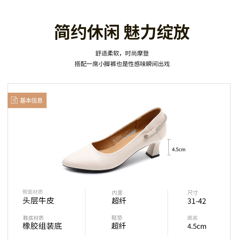 정품 가죽 미드 힐 신발 여성용 2023 새로운 봄과 가을 모든 매치 소가죽 뾰족한 발가락 얇은 굽 스몰 사이즈 31 사이즈 싱글 레이어 신발 여성 신발스토어 가기