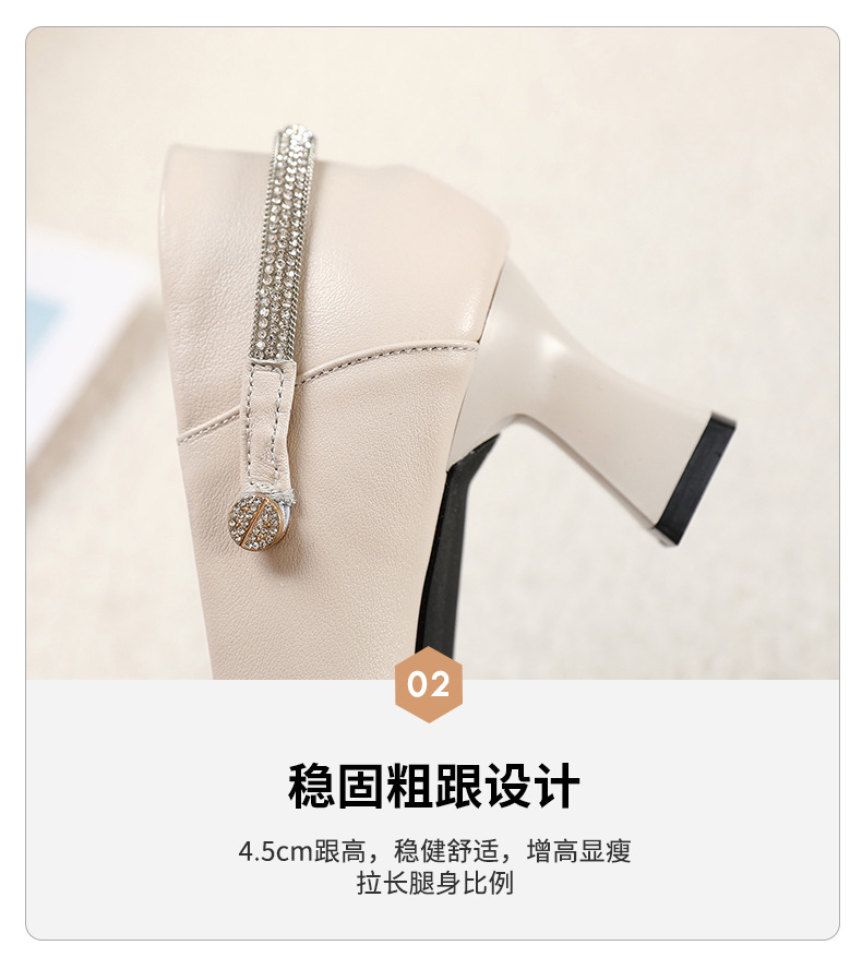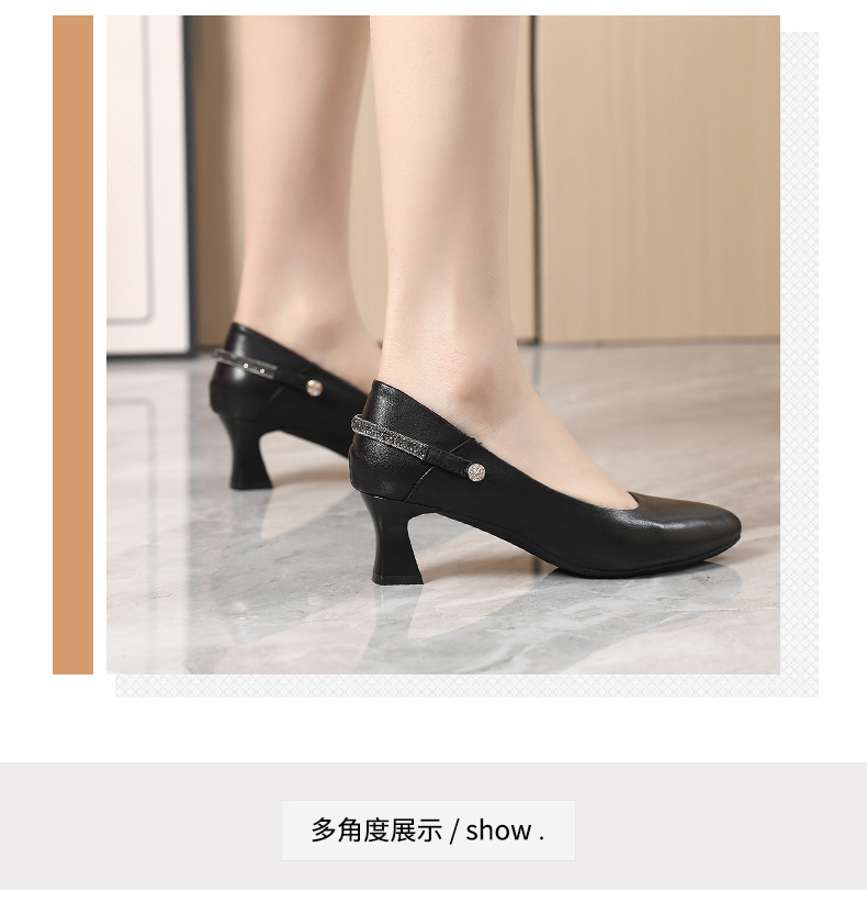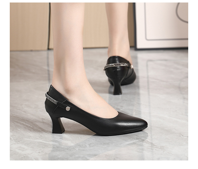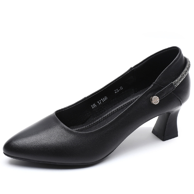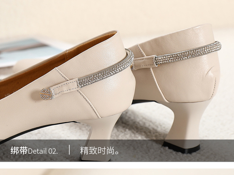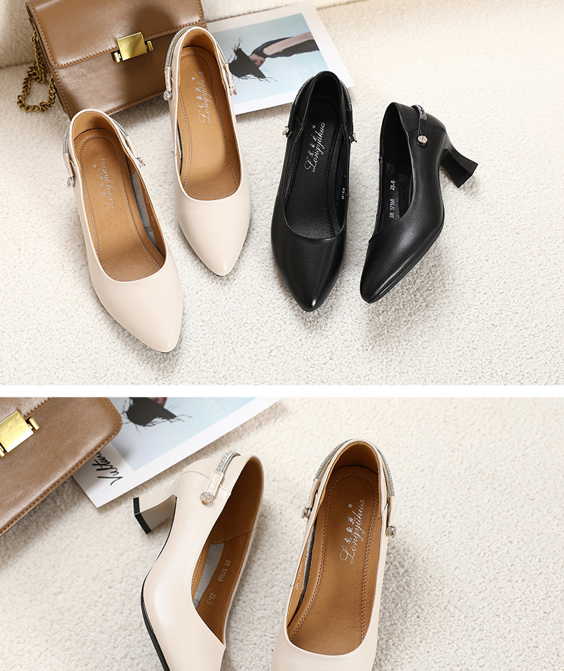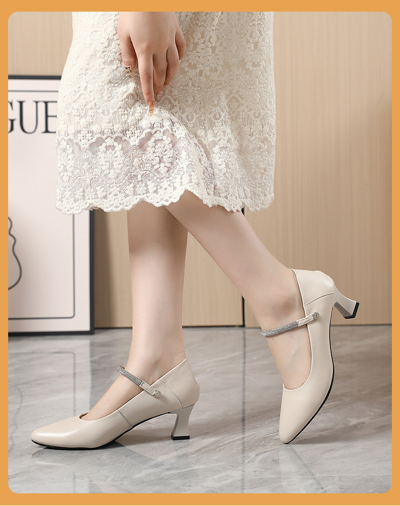 정품 가죽 미드 힐 신발 여성용 2023 새로운 봄과 가을 모든 매치 소가죽 뾰족한 발가락 얇은 굽 스몰 사이즈 31 사이즈 싱글 레이어 신발 여성 신발스토어 가기