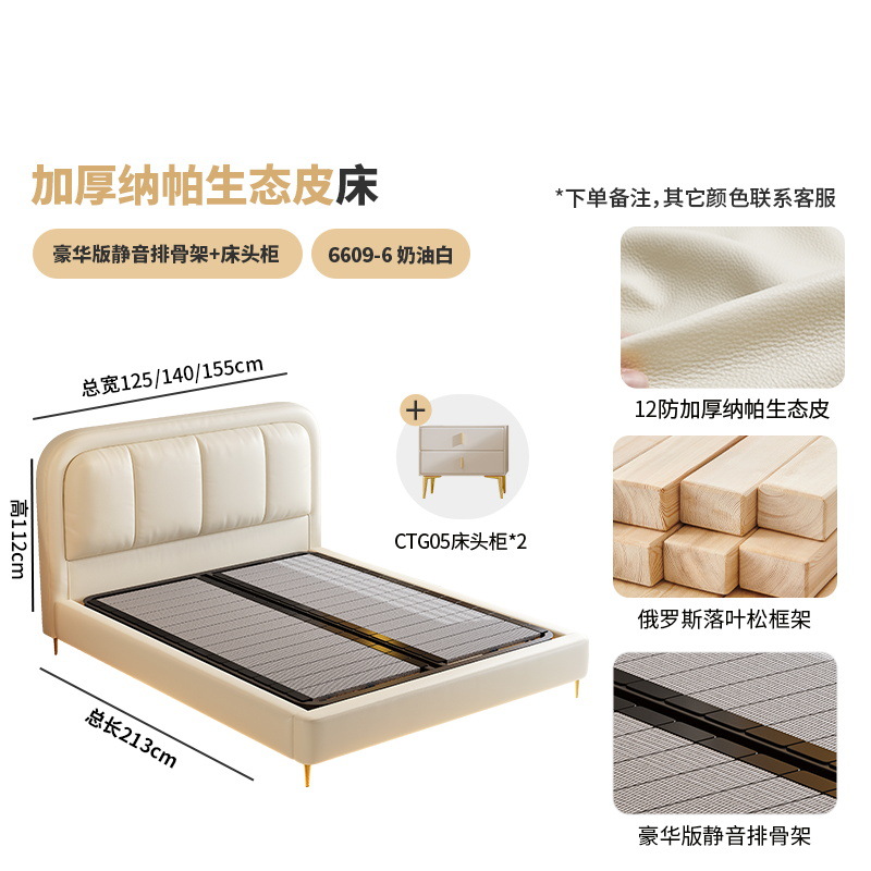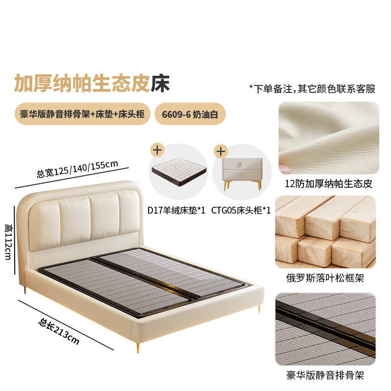 • 나파 친환경 가죽 + D17 매트리스 + 수납장*2 / 업그레이드된 저소음 지지대