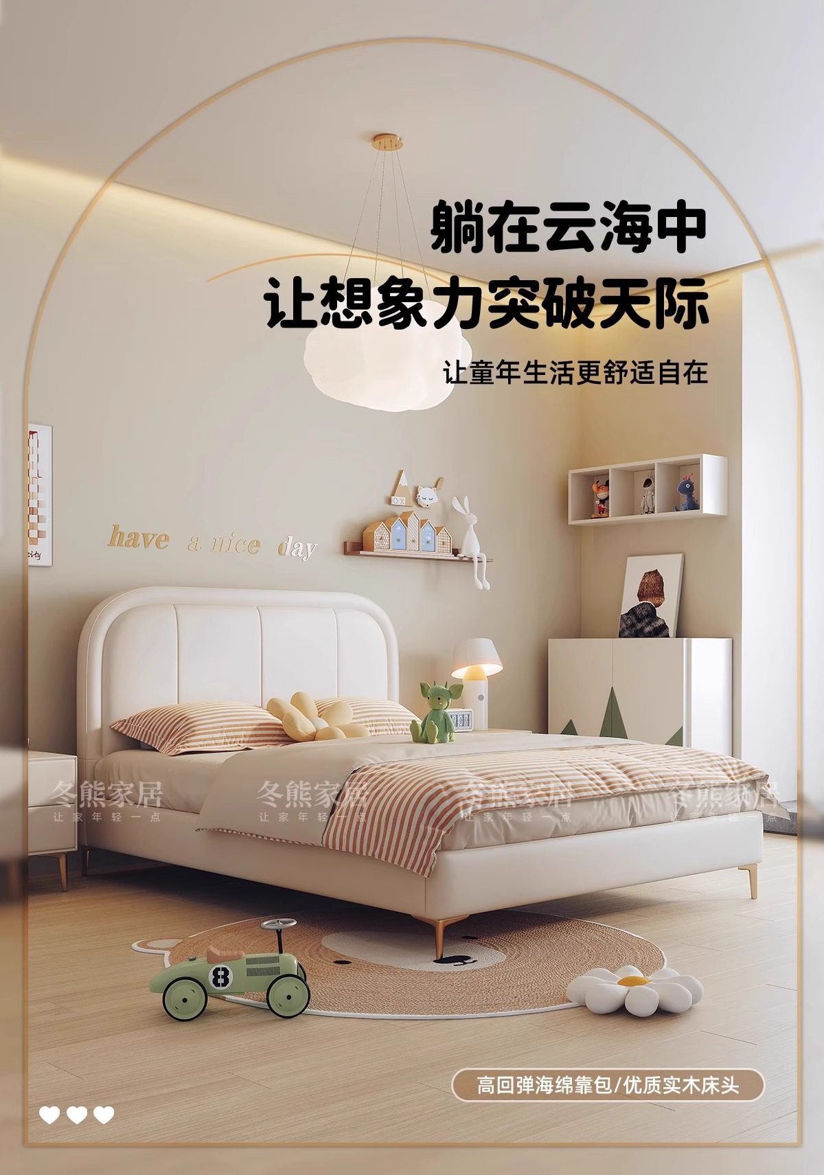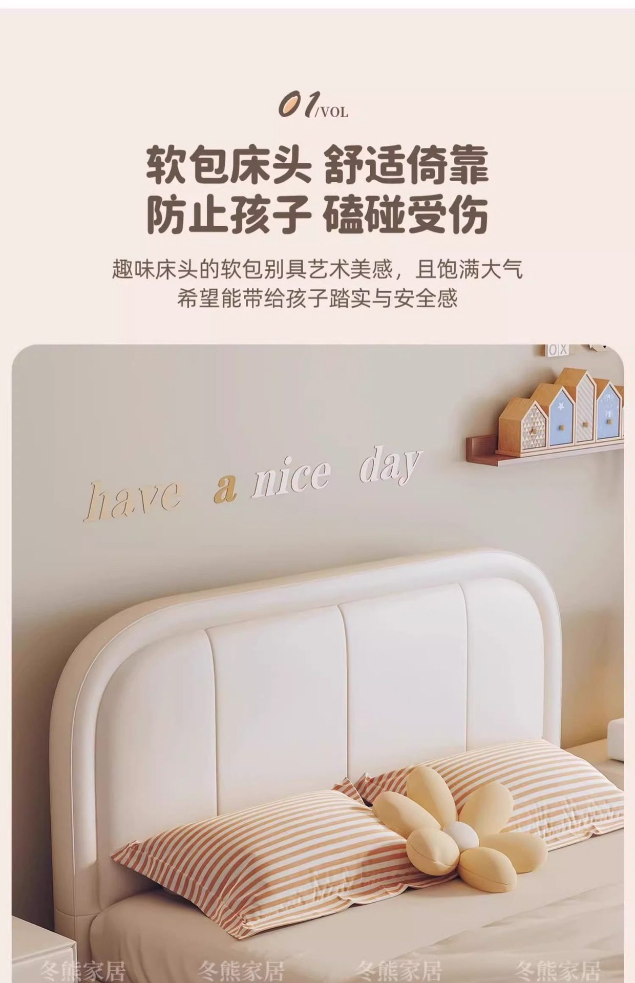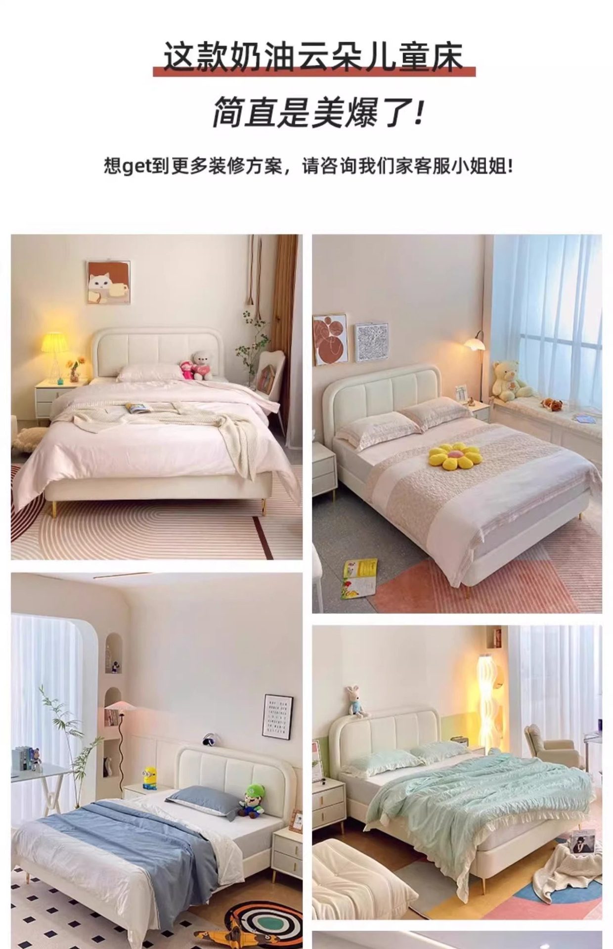 Tongyu 특별한 크림 스타일의 모던하고 심플한 소년용 싱글 라이트 럭셔리 가죽 아트 소녀용 공주 침대 어린이 침대스토어 가기