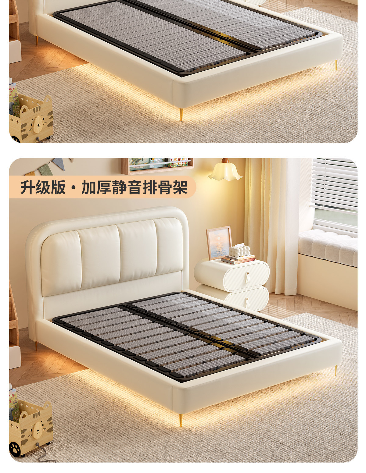 • 1층 소가죽 + 침대 옆 탁자*1/업그레이드된 무소음 프레임 침대