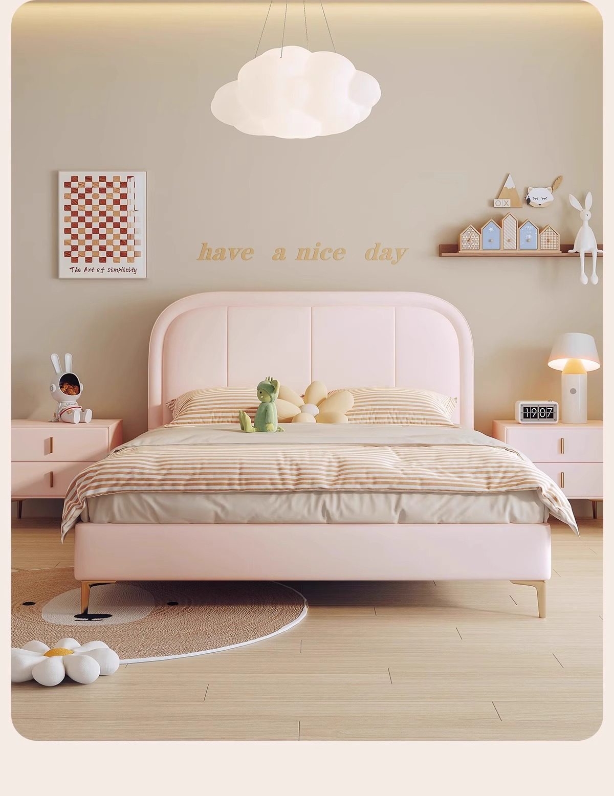 Tongyu 특별한 크림 스타일의 모던하고 심플한 소년용 싱글 라이트 럭셔리 가죽 아트 소녀용 공주 침대 어린이 침대