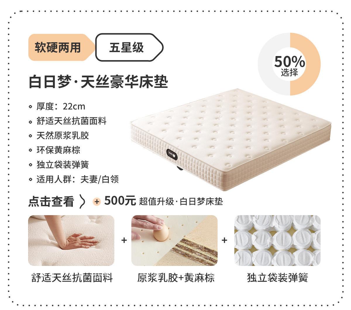 • 천연 소가죽 + D17 매트리스 / 업그레이드된 저소음 스프링 침대