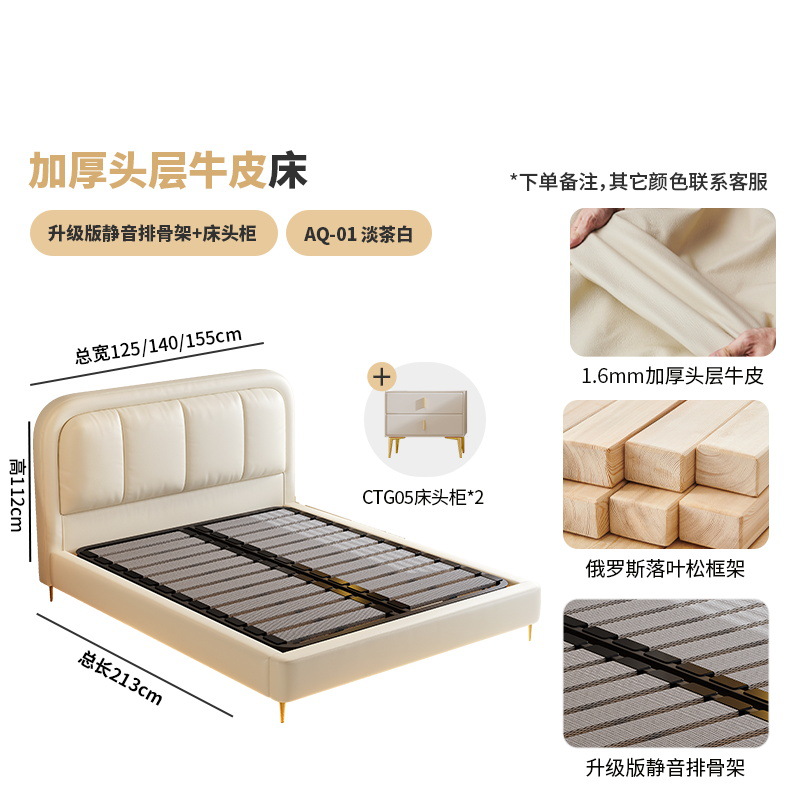• 천연 소가죽 + D17 매트리스 + 수납장*2 / 업그레이드된 저소음 스프링 침대