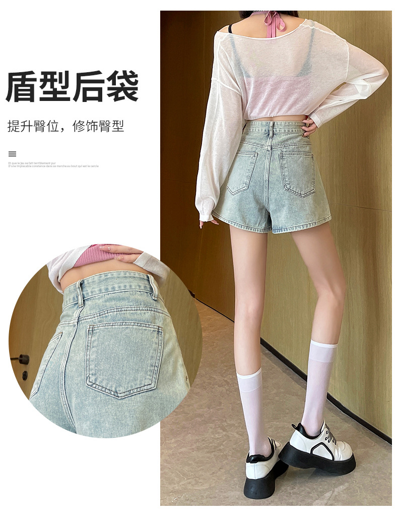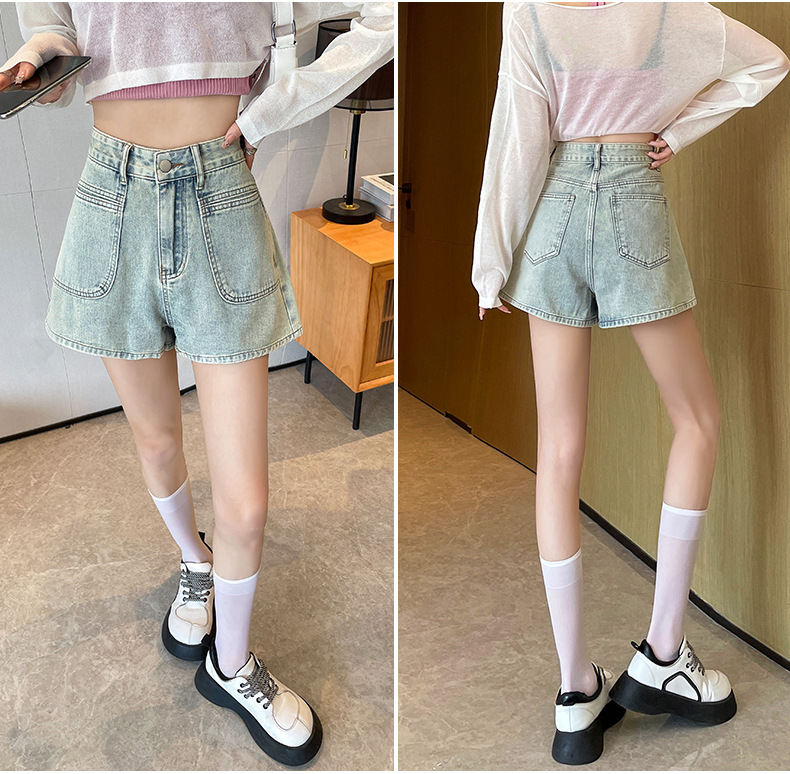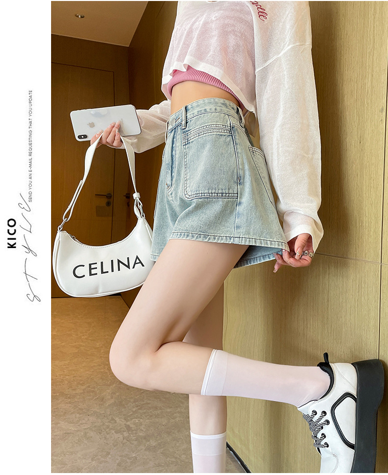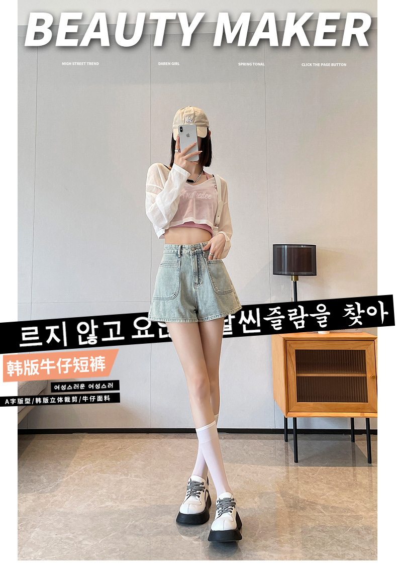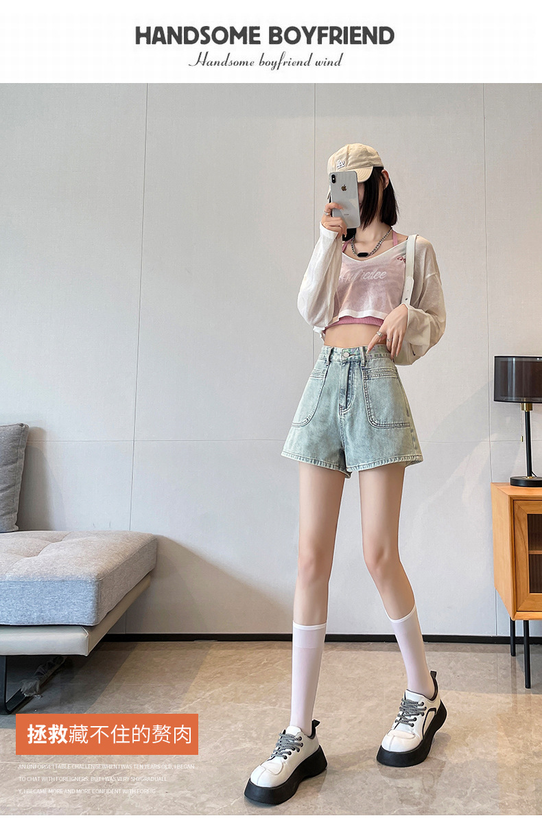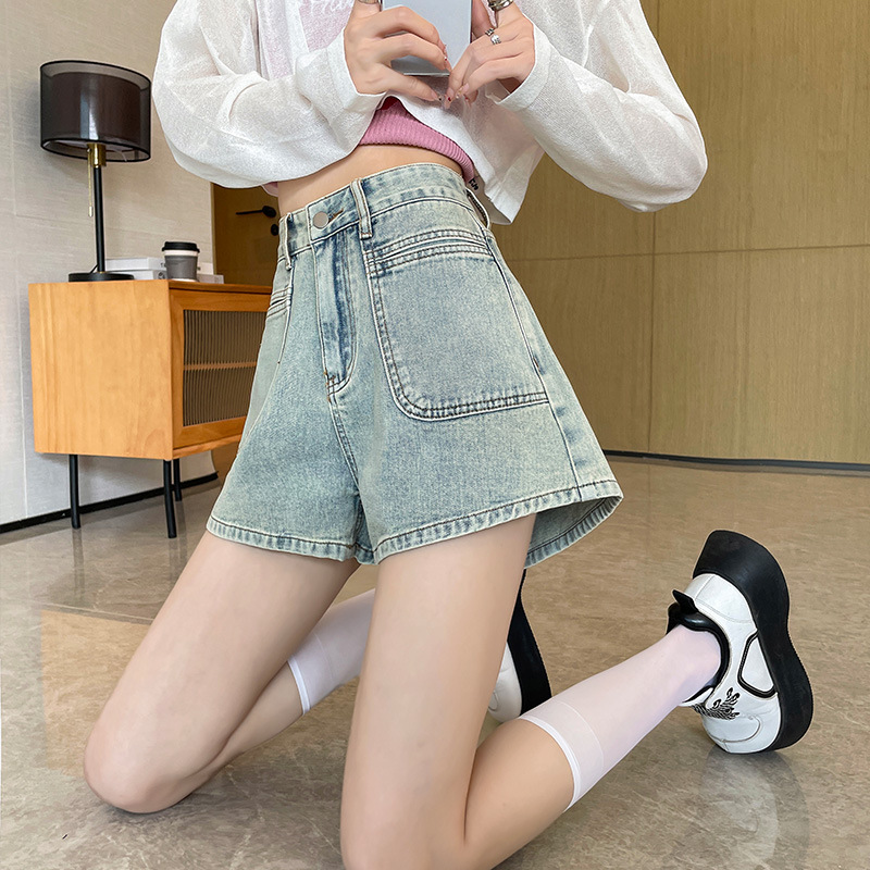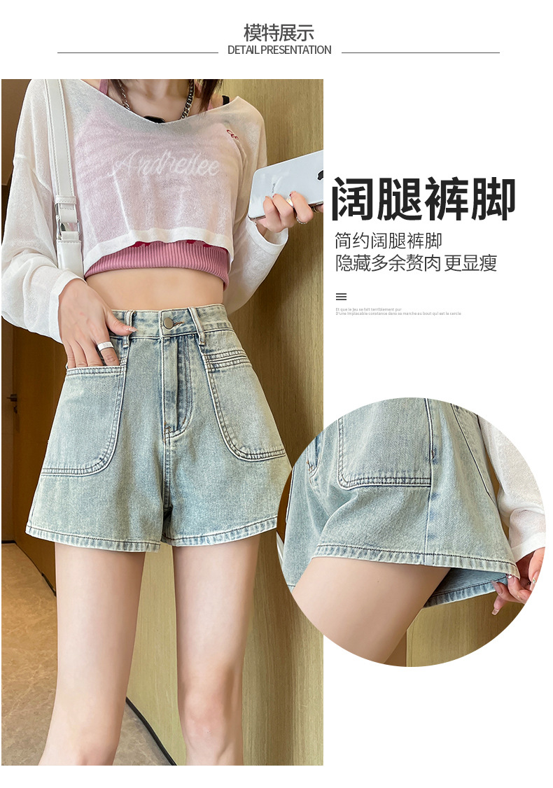 하이 웨이스트 데님 반바지 여성용 여름 얇은 2023 새로운 A-라인 핫 걸 디자인 모든 매치 와이드 레그 핫 팬츠스토어 가기