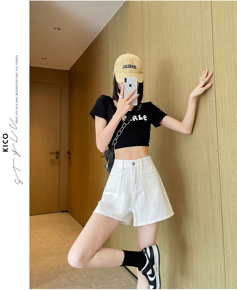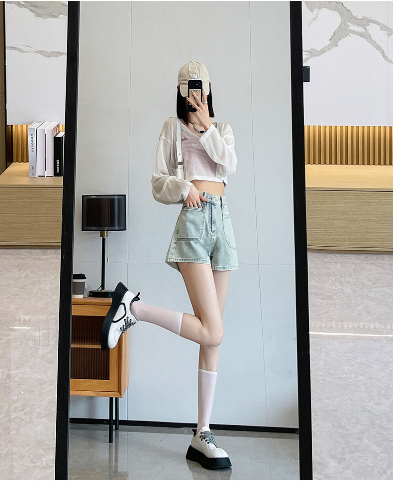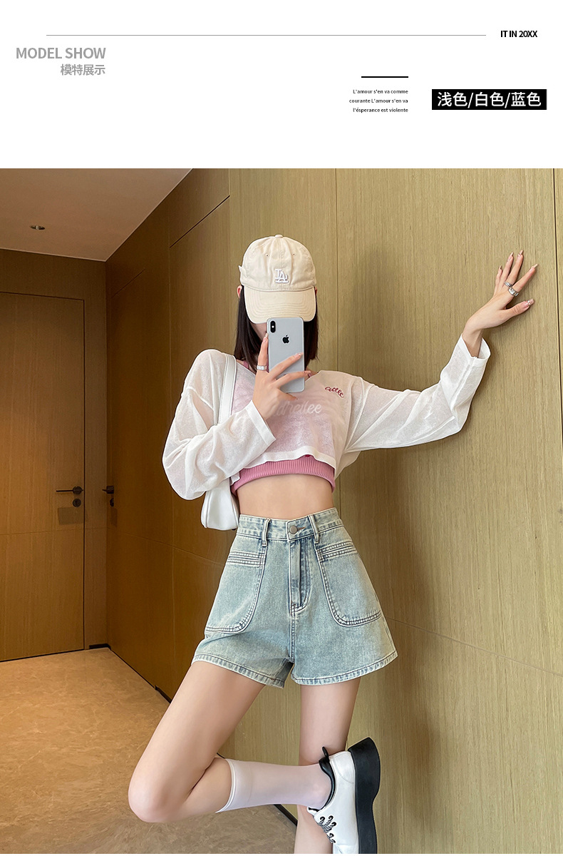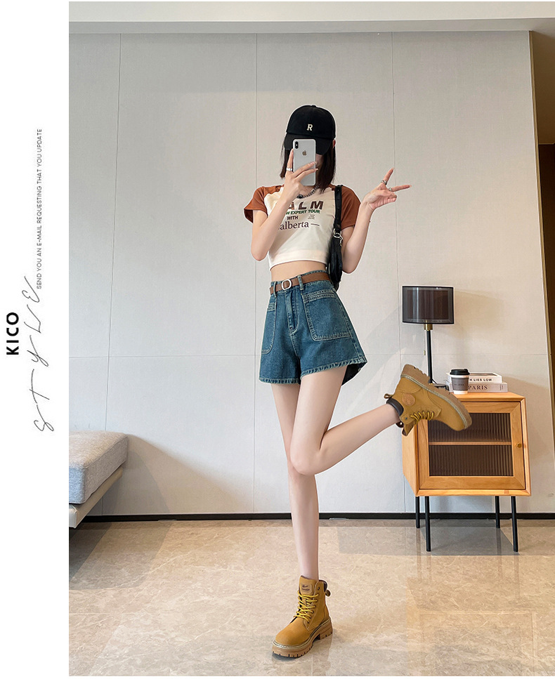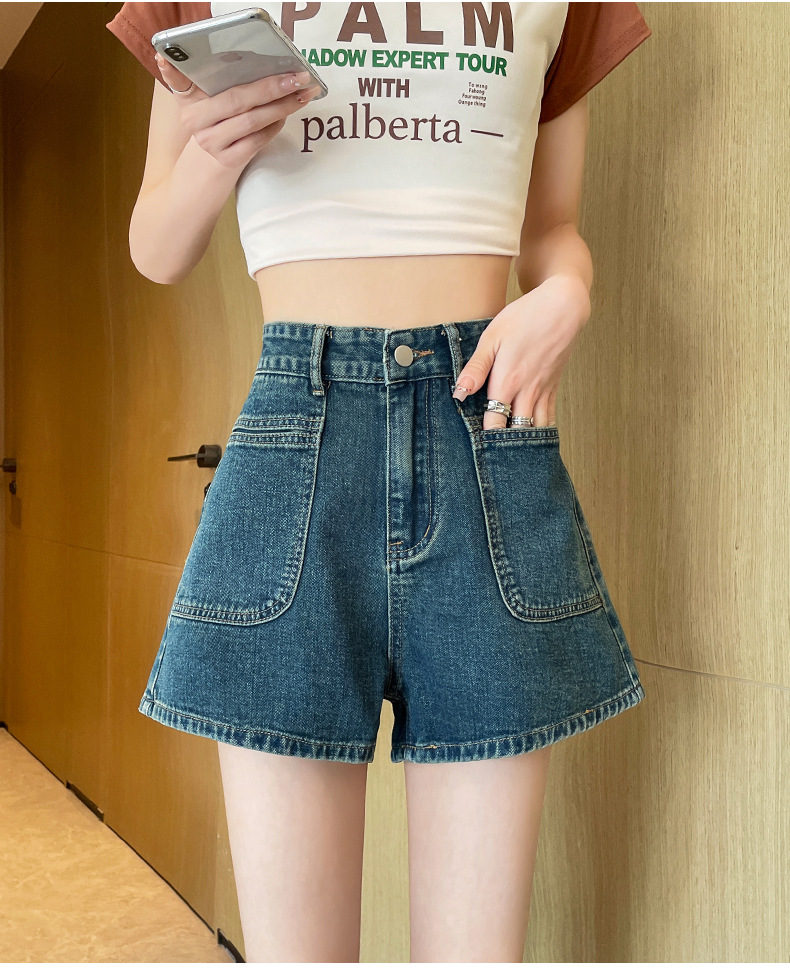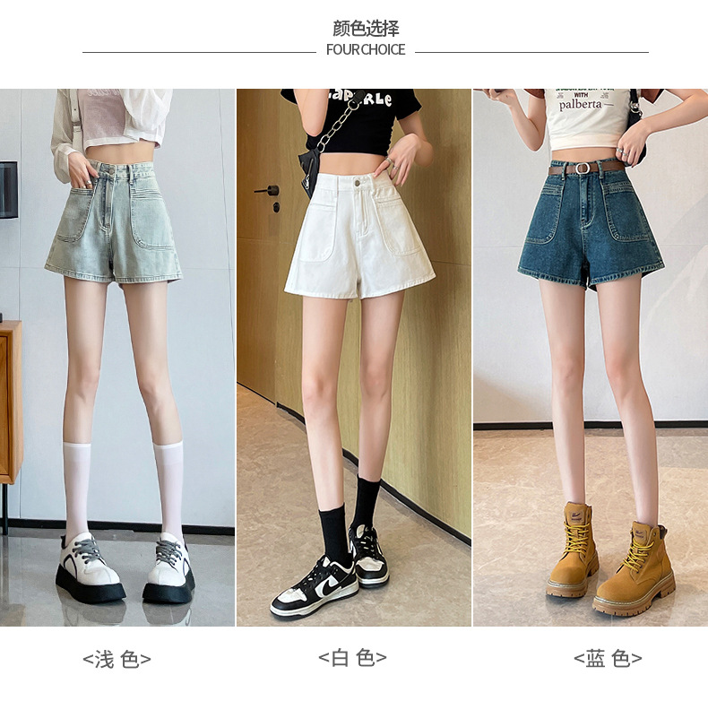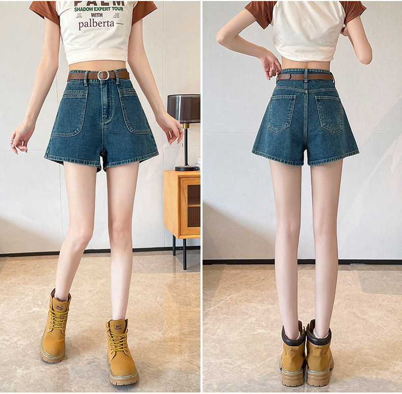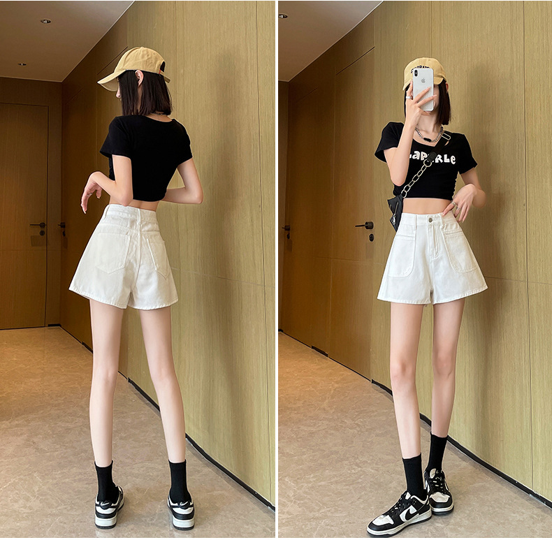 하이 웨이스트 데님 반바지 여성용 여름 얇은 2023 새로운 A-라인 핫 걸 디자인 모든 매치 와이드 레그 핫 팬츠스토어 가기