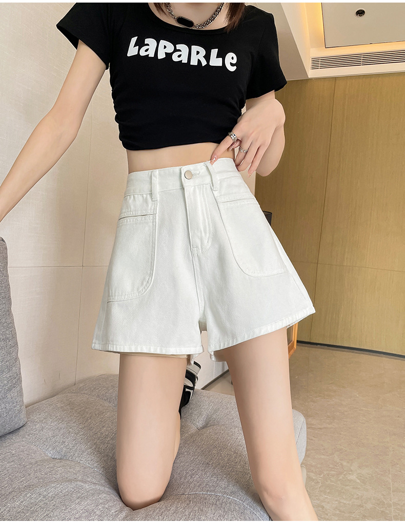 하이 웨이스트 데님 반바지 여성용 여름 얇은 2023 새로운 A-라인 핫 걸 디자인 모든 매치 와이드 레그 핫 팬츠