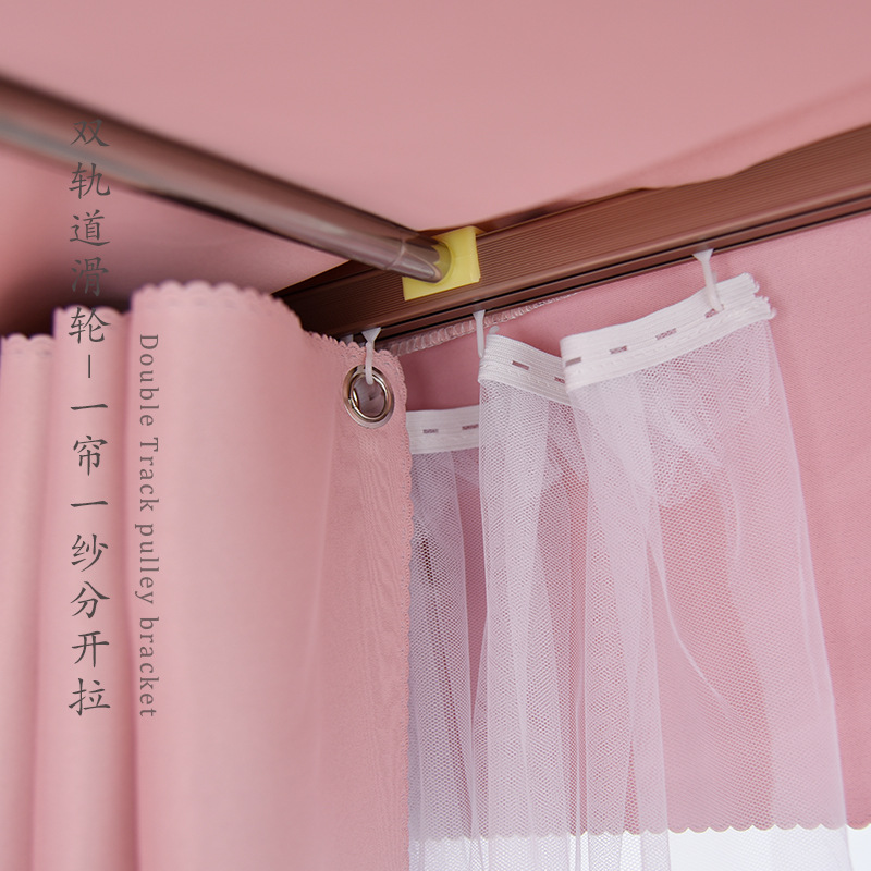 IYR7U 형 더블 슬라이드 레일 침대 커튼 학생 기숙사 상하 이층 침대 커튼 차광 모기 방지 일체형 단색 공주