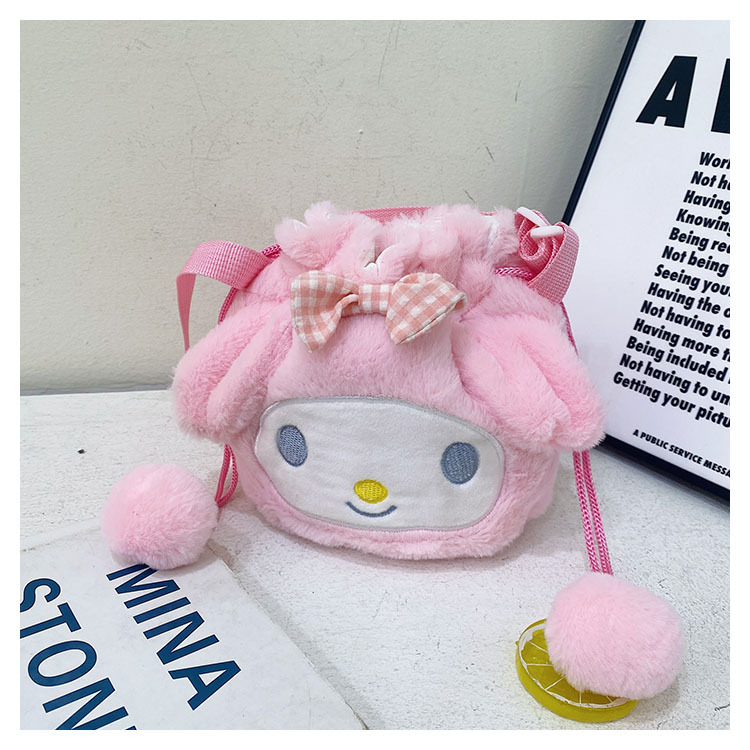 새로운 산리오 번들 버킷 크로스바디 졸라매는 끈 인형 가방 파악 인형 만화 봉제 인형 가방 인형