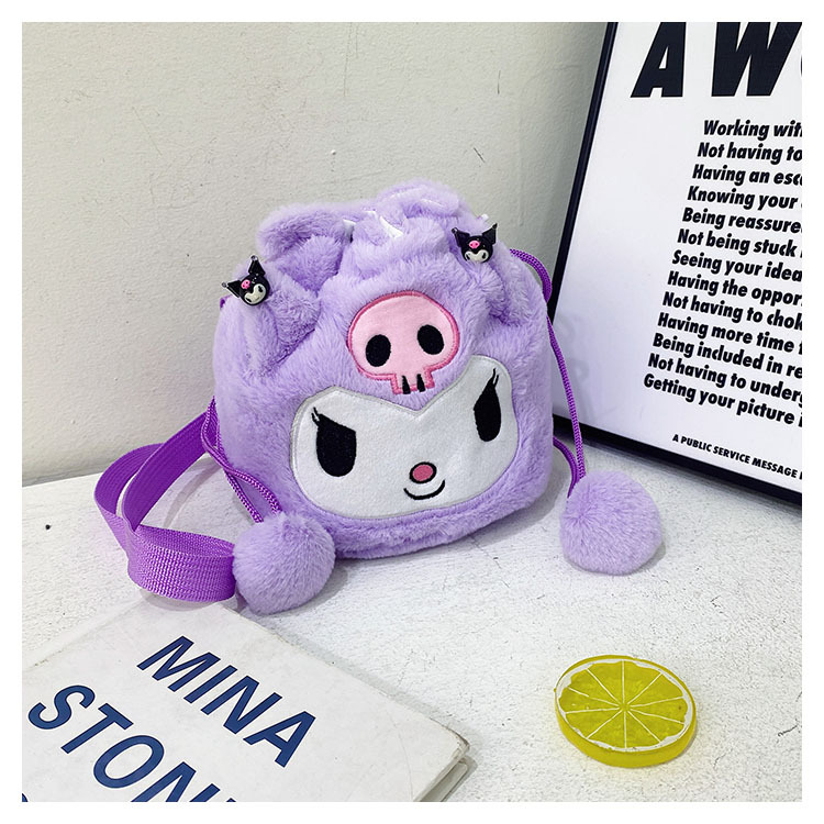 새로운 산리오 번들 버킷 크로스바디 졸라매는 끈 인형 가방 파악 인형 만화 봉제 인형 가방 인형스토어 가기
