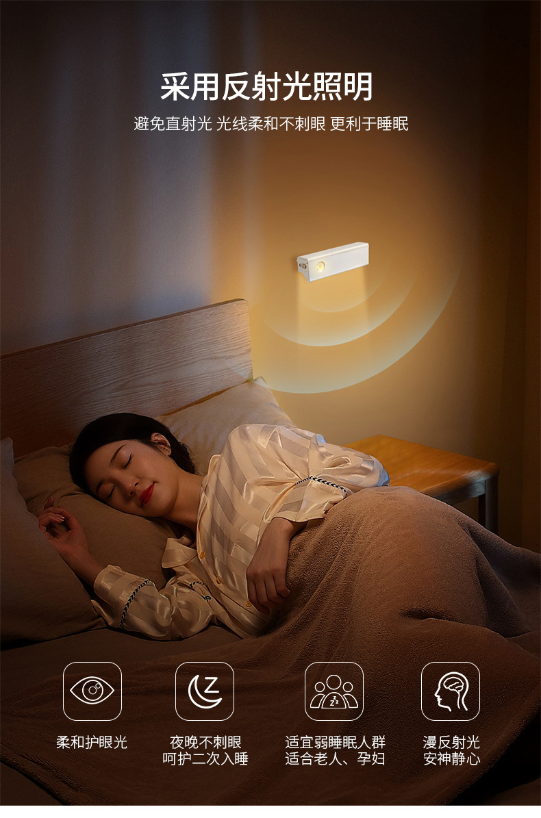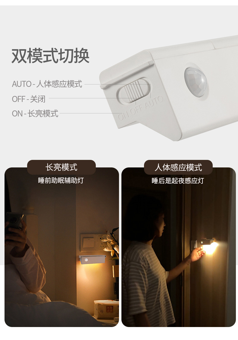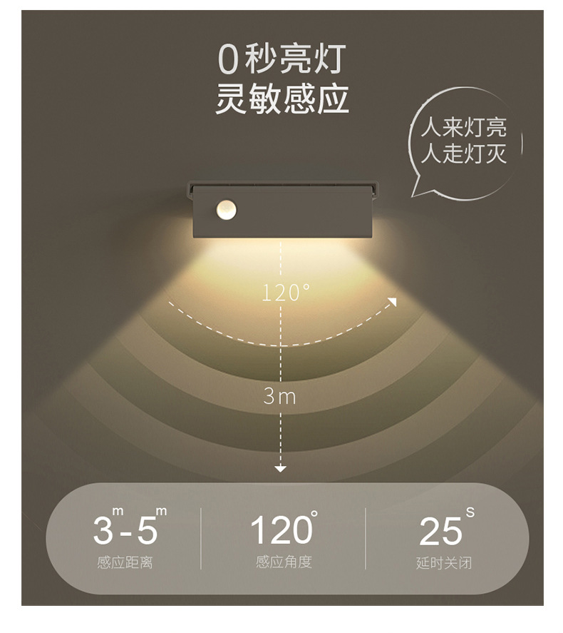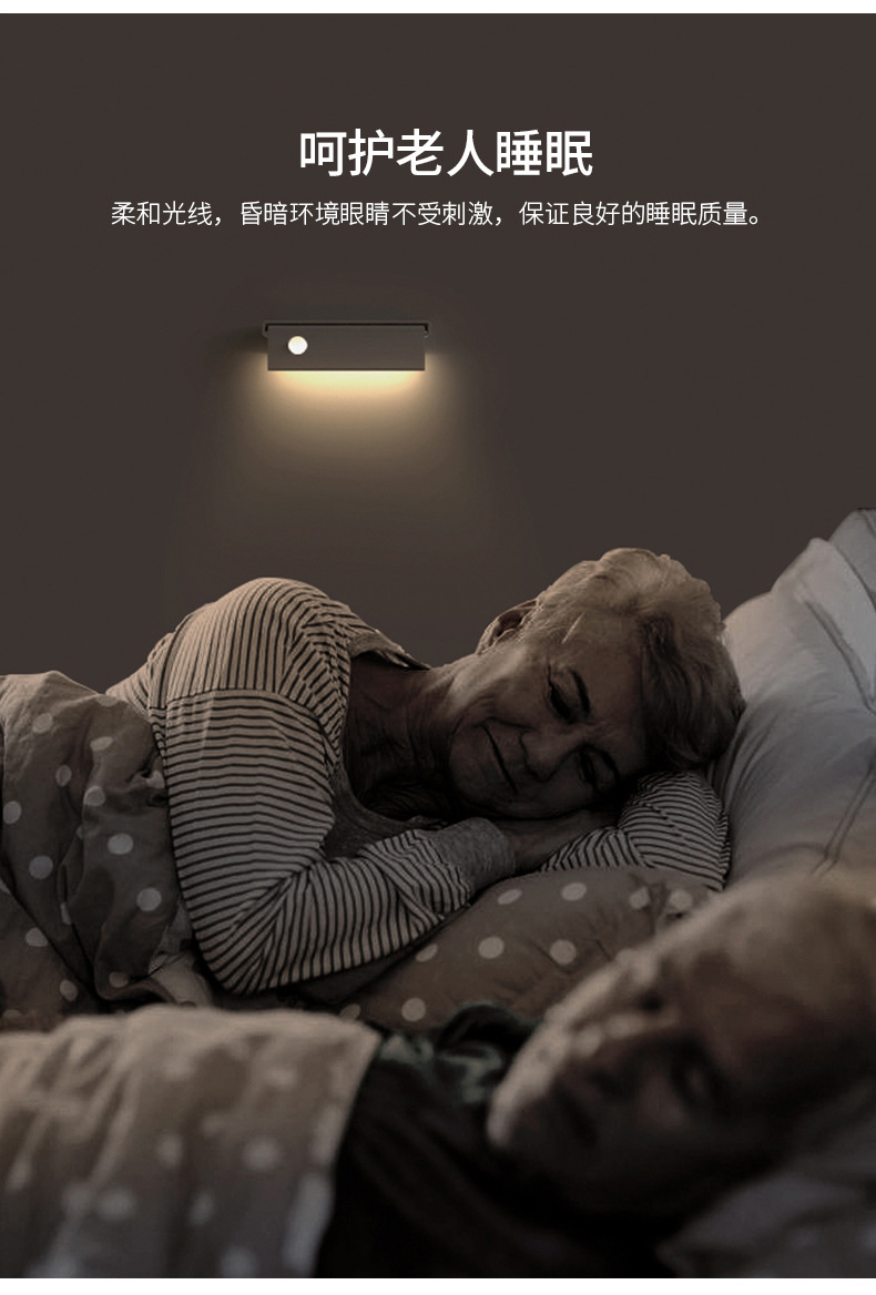 인체 센서 라이트 야간 조명 충전식 벽 램프 벽 캐비닛 라이트 통로 침실 설치 무료 LED 스마트 야간 조명 수면스토어 가기