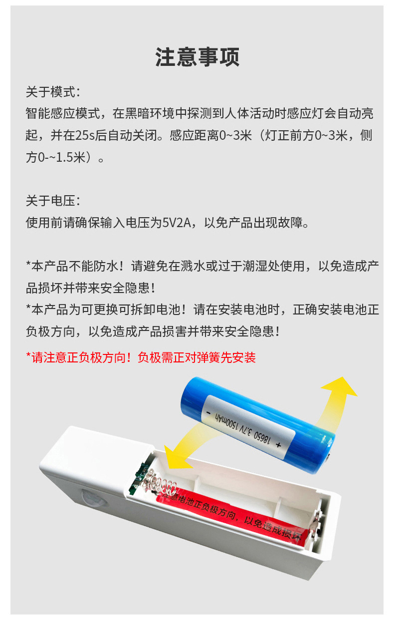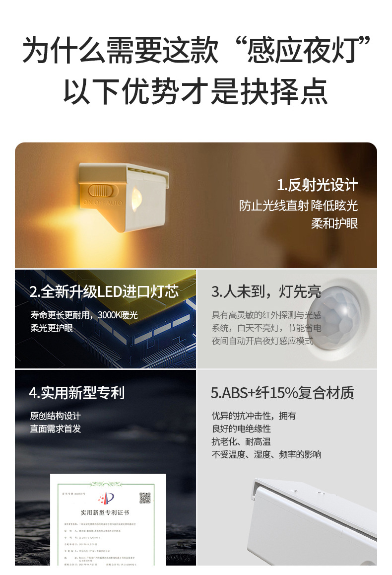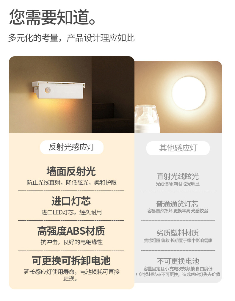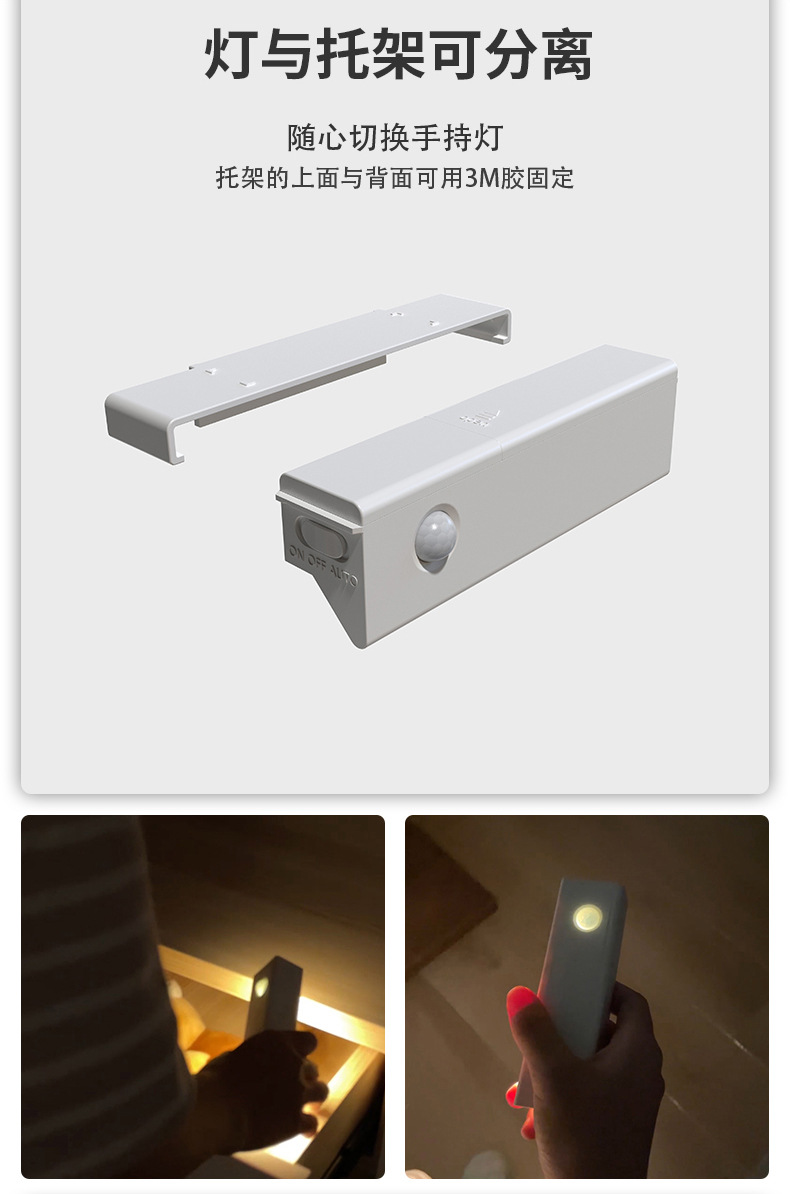 인체 센서 라이트 야간 조명 충전식 벽 램프 벽 캐비닛 라이트 통로 침실 설치 무료 LED 스마트 야간 조명 수면스토어 가기