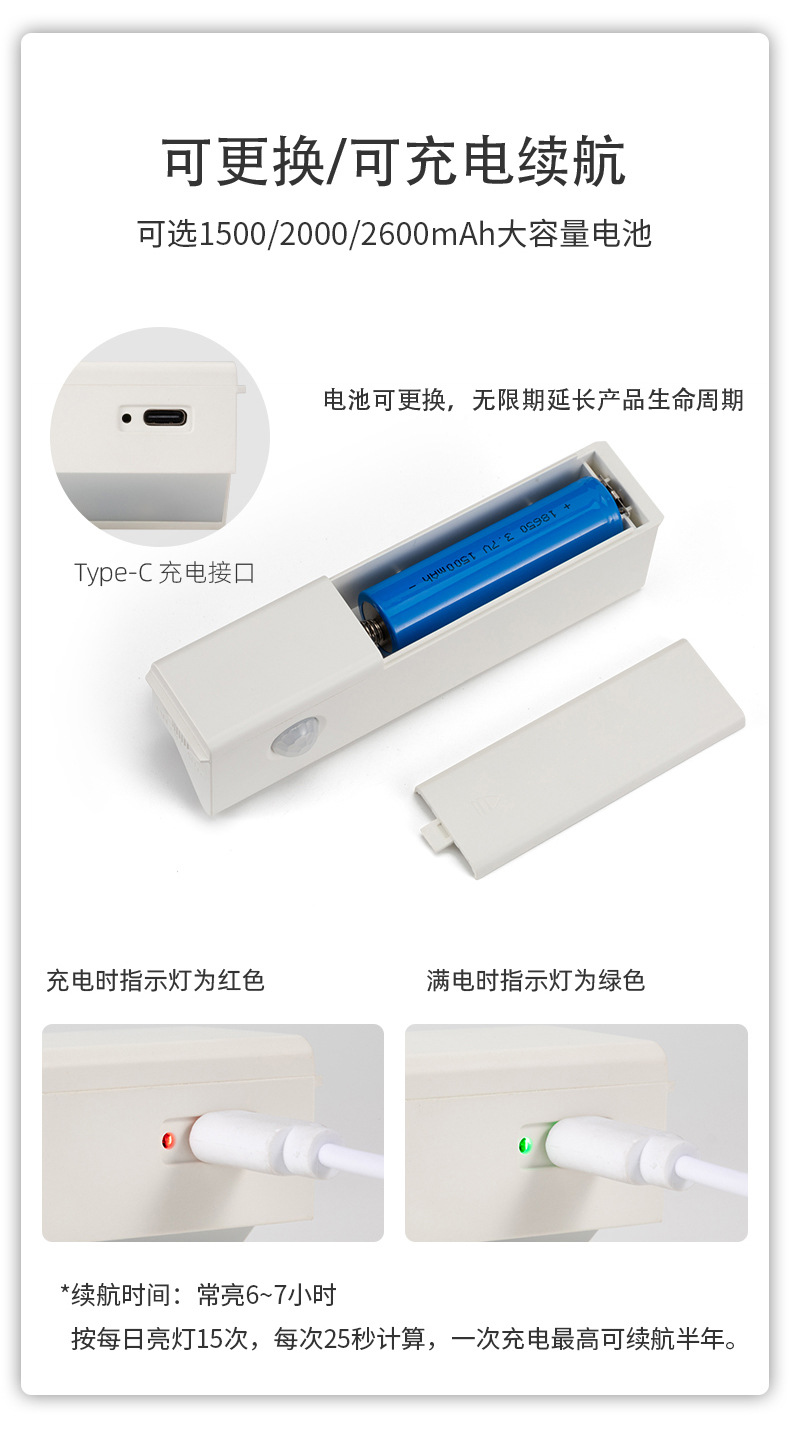 인체 센서 라이트 야간 조명 충전식 벽 램프 벽 캐비닛 라이트 통로 침실 설치 무료 LED 스마트 야간 조명 수면
