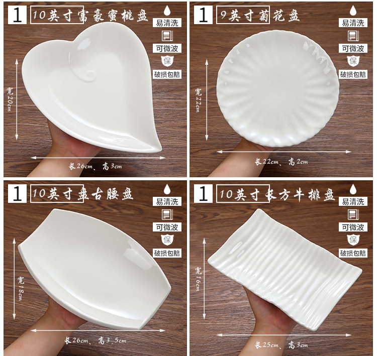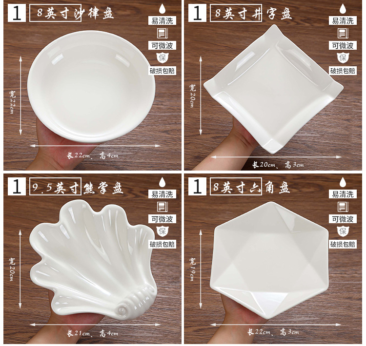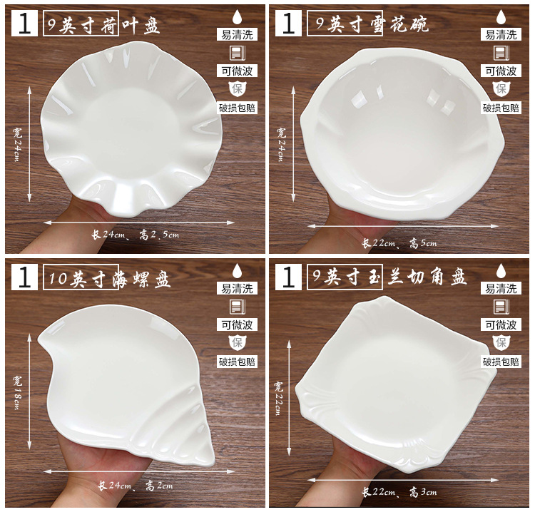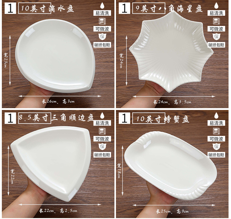 특별한 모양의 접시 접시 접시 상업용 가정용 불규칙 흰색 세라믹 접시 호텔 식기 레스토랑 뜨거운 접시 차가운 접시 접시