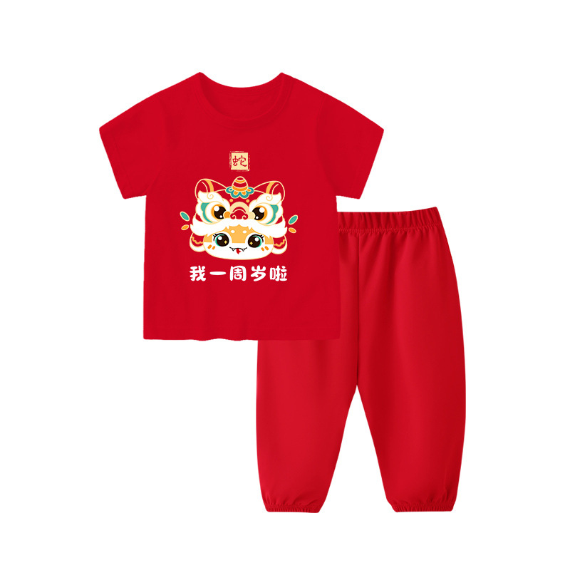 1세 남아용 생일 드레스, 여아용 반팔 바지 정장, 빨간색 남아용 아기 옷