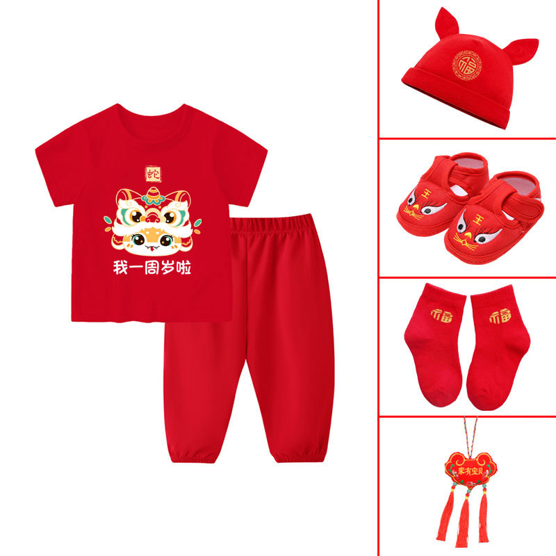 • 뱀띠 아기옷 세트 - 레드 + 레드 + 4종 세트