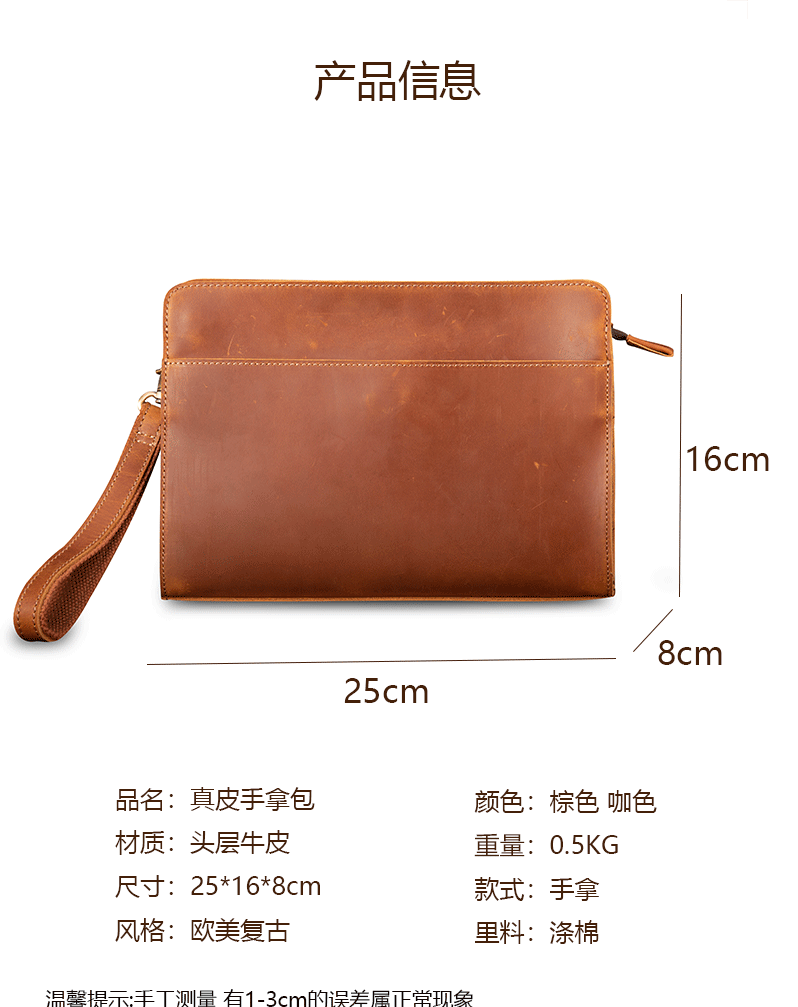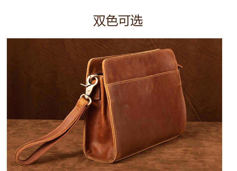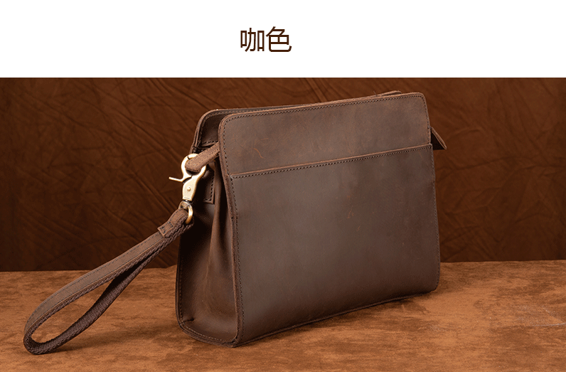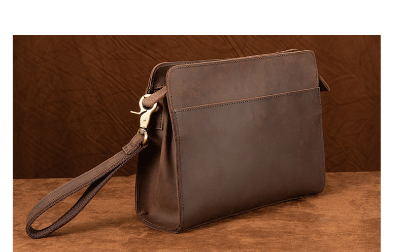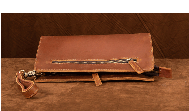 크로스 보더 정품 가죽 남성용 클러치 백 크레이지 호스 가죽 핸드백 빈티지 남성용 다기능 비즈니스 롱 핸드백 제조업체스토어 가기
