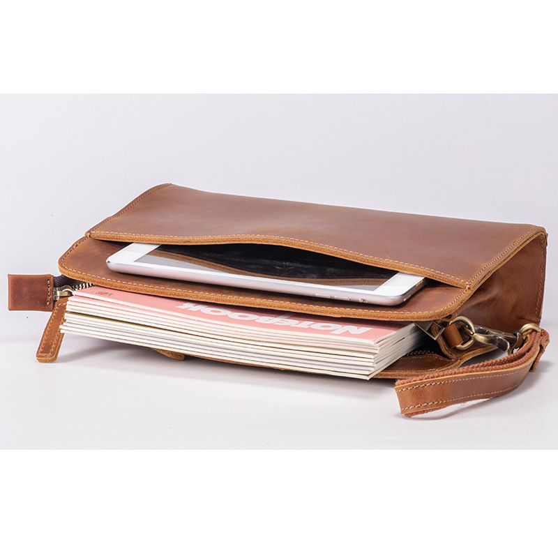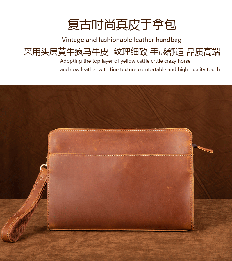 크로스 보더 정품 가죽 남성용 클러치 백 크레이지 호스 가죽 핸드백 빈티지 남성용 다기능 비즈니스 롱 핸드백 제조업체