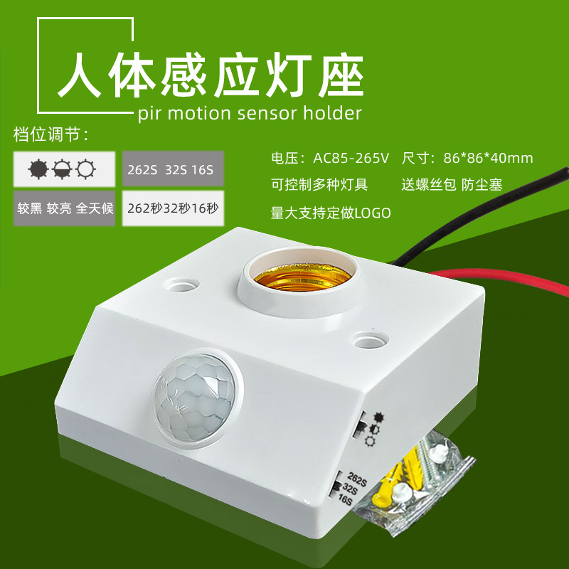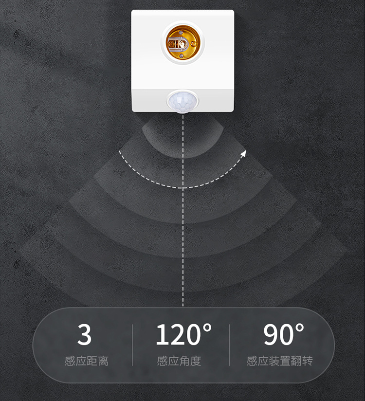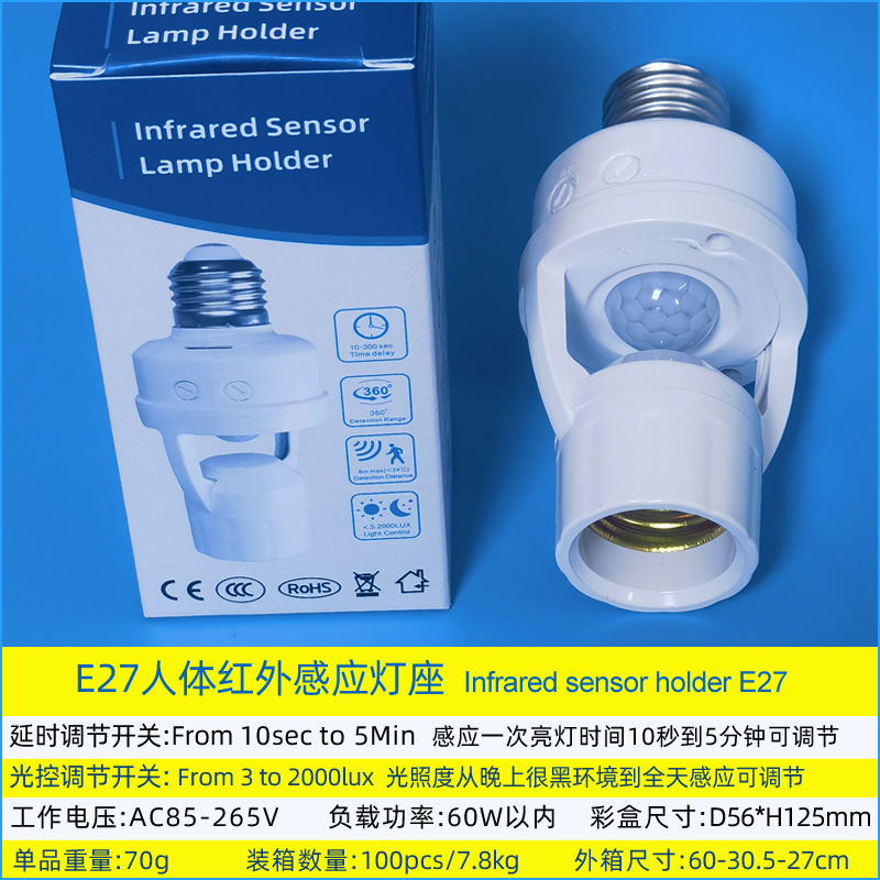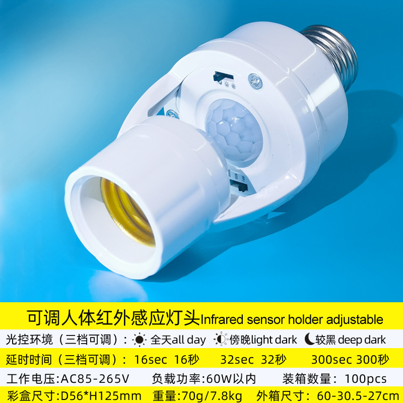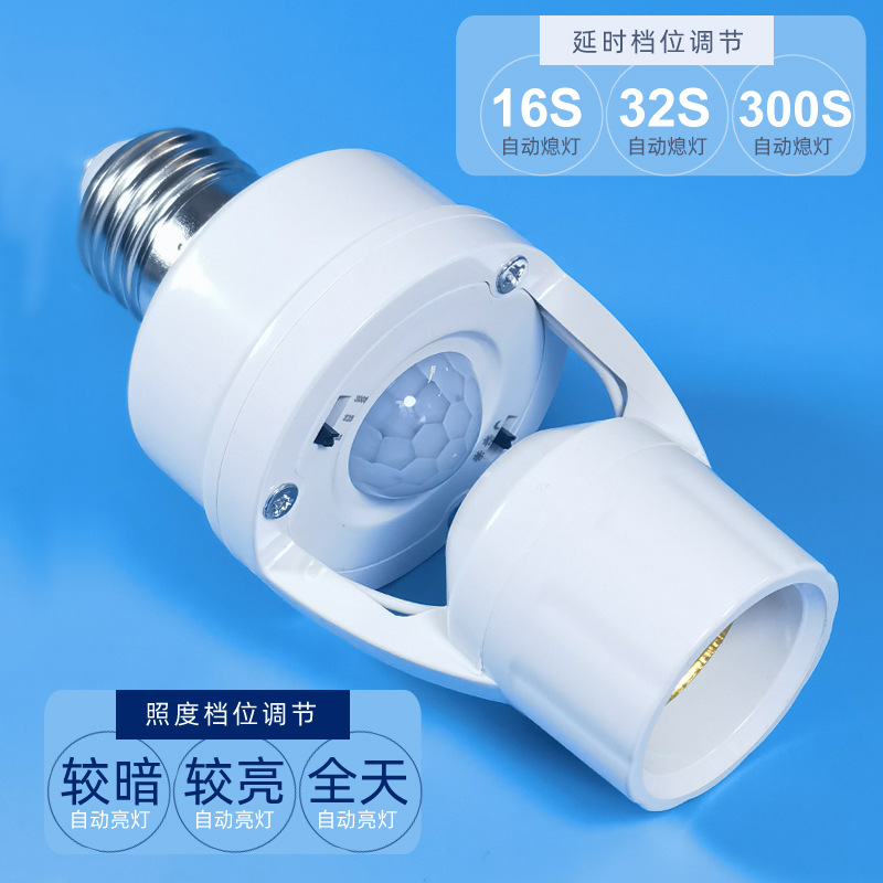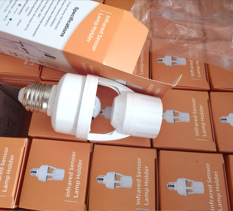 표면 장착형 적외선 인체 감지 스위치 램프 홀더, 복도 조명 제어 E27 램프 홀더, 사람 감지 시 점등, 조절 가능한 LED 램프 홀더