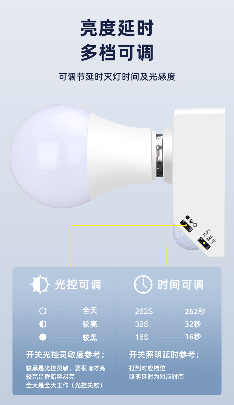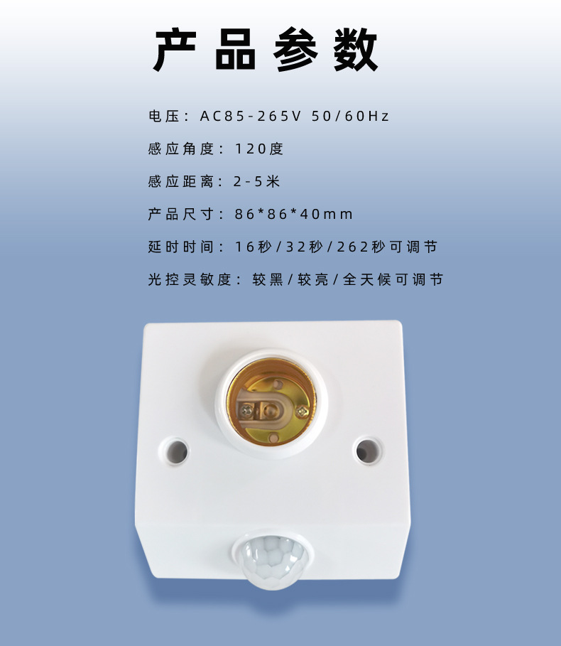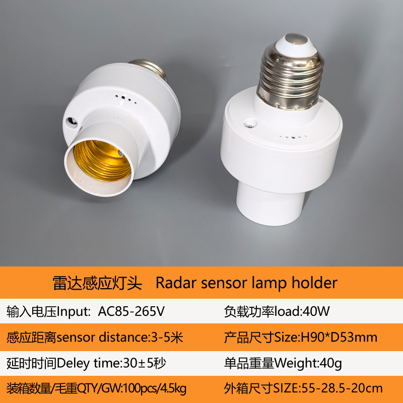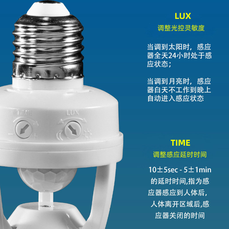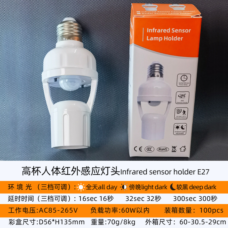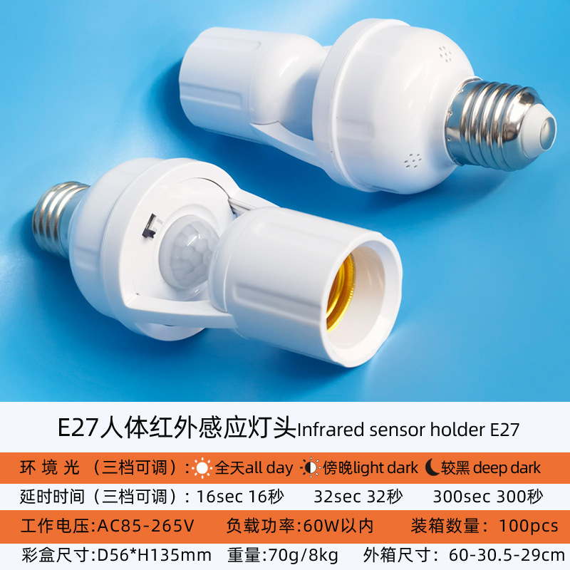 표면 장착형 적외선 인체 감지 스위치 램프 홀더, 복도 조명 제어 E27 램프 홀더, 사람 감지 시 점등, 조절 가능한 LED 램프 홀더