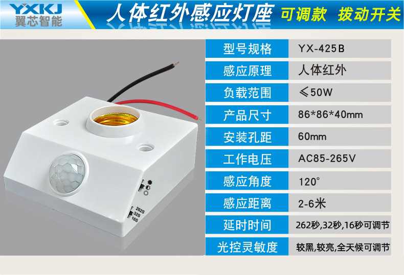 • 인체 적외선 유도 램프 홀더-조절 가능