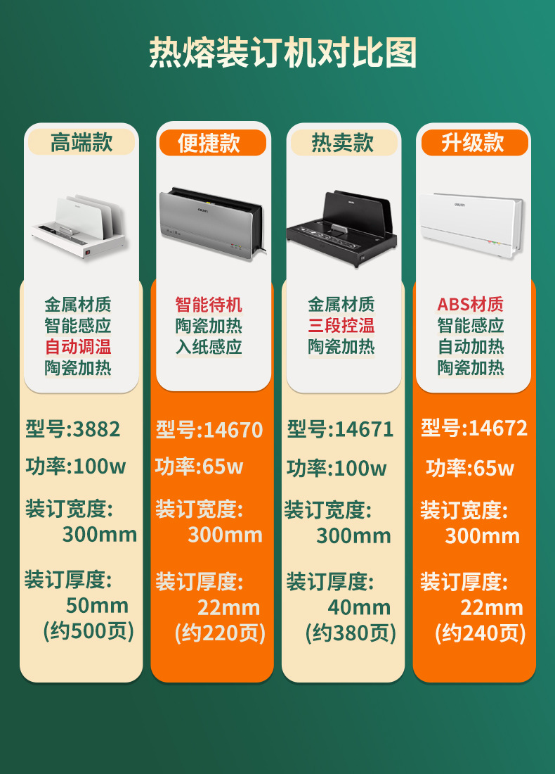 델리 3882 핫멜트 제본 기계 책 A4 문서 입찰 계약 바우처 봉투 14672 무선 접착제 기계