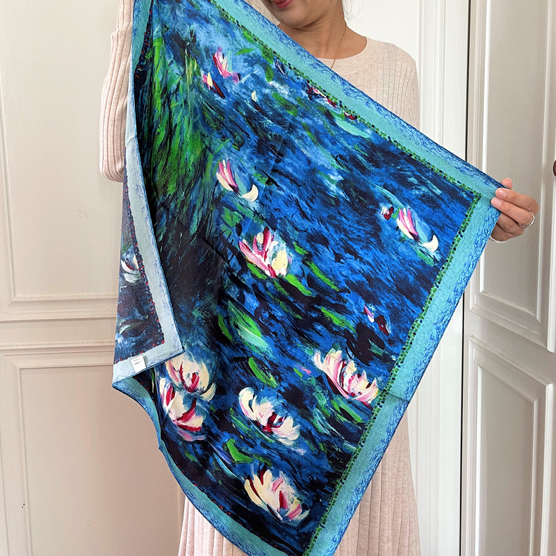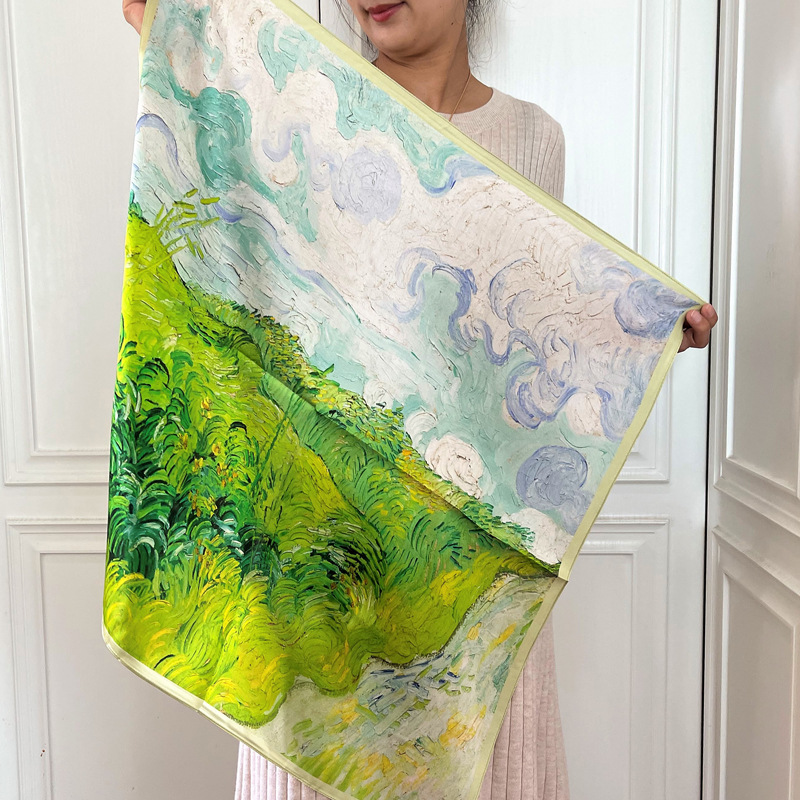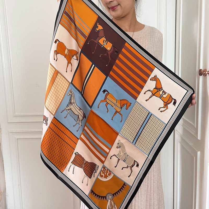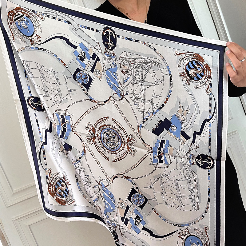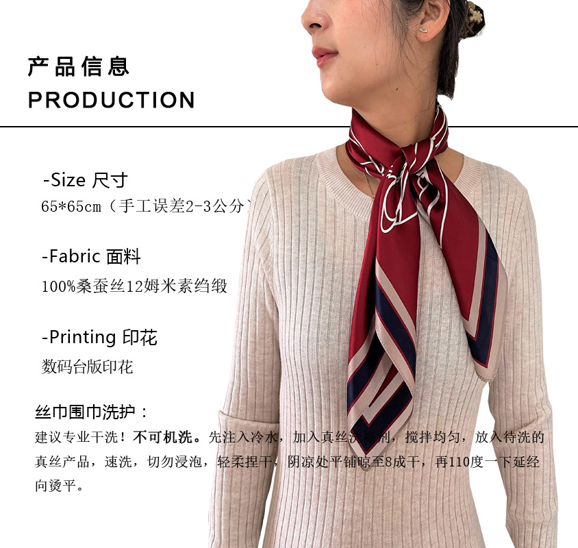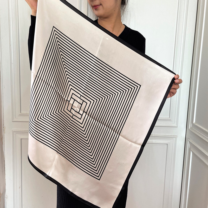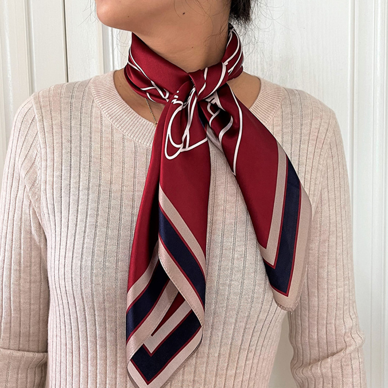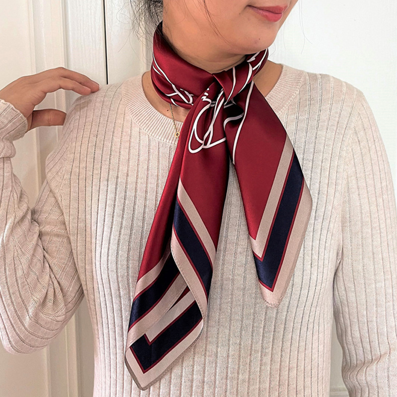 여름 목 덮음 일반 크레이프 새틴 70 스퀘어 스카프 스트라이프 실크 스카프 목 보호 어깨 뽕나무 실크 스카프 다목적스토어 가기