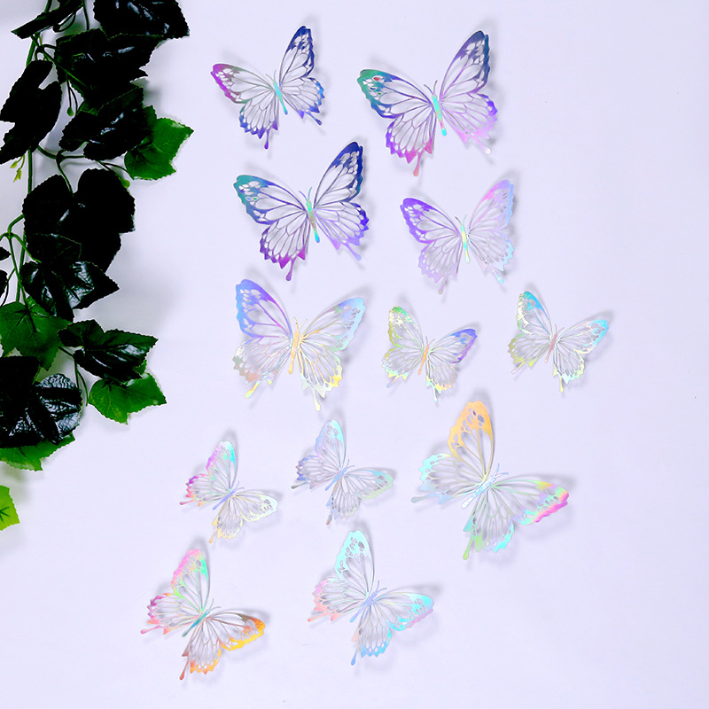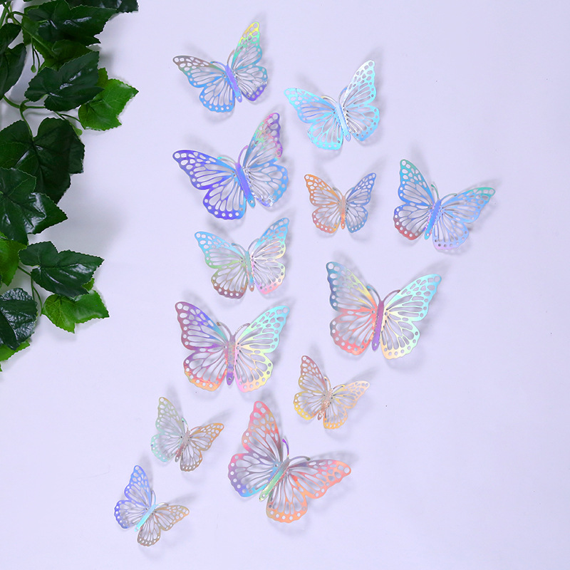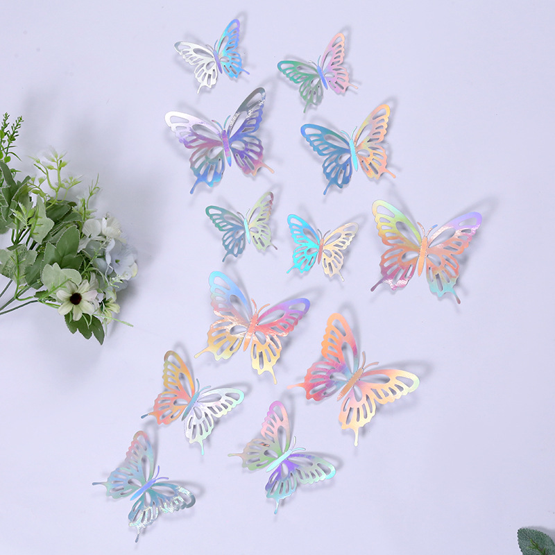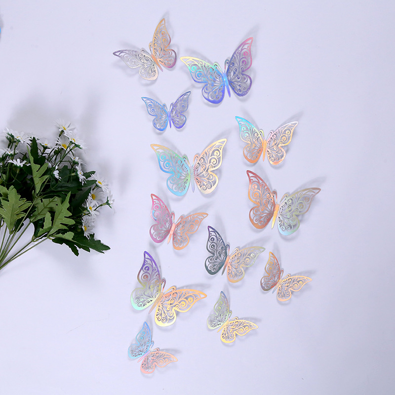 3D 금속 질감 중공 나비 스테레오 시뮬레이션 나비 홈 스티커 장식 대외 무역 색상 나비 벽 스티커