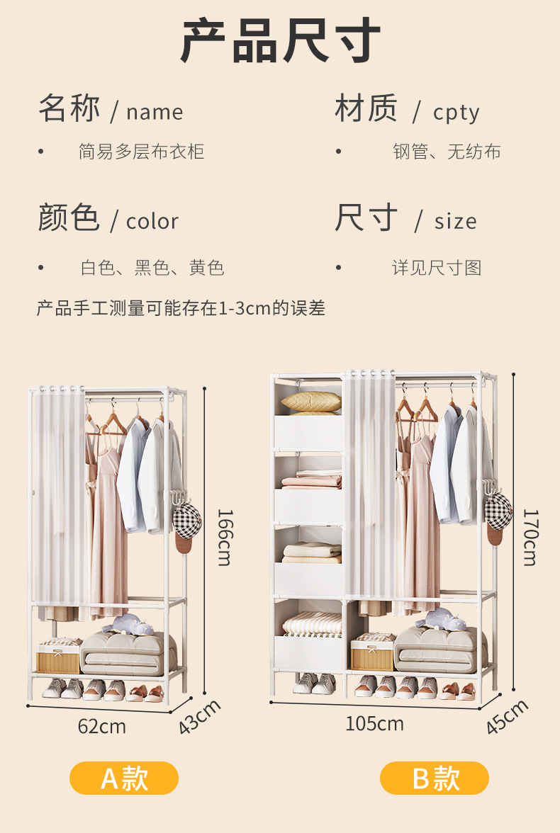 간단한 천 옷장 가정용 침실 방진 기숙사 임대실 조립 교수형 작은 옷장 경제적 인 새 수납 캐비닛스토어 가기