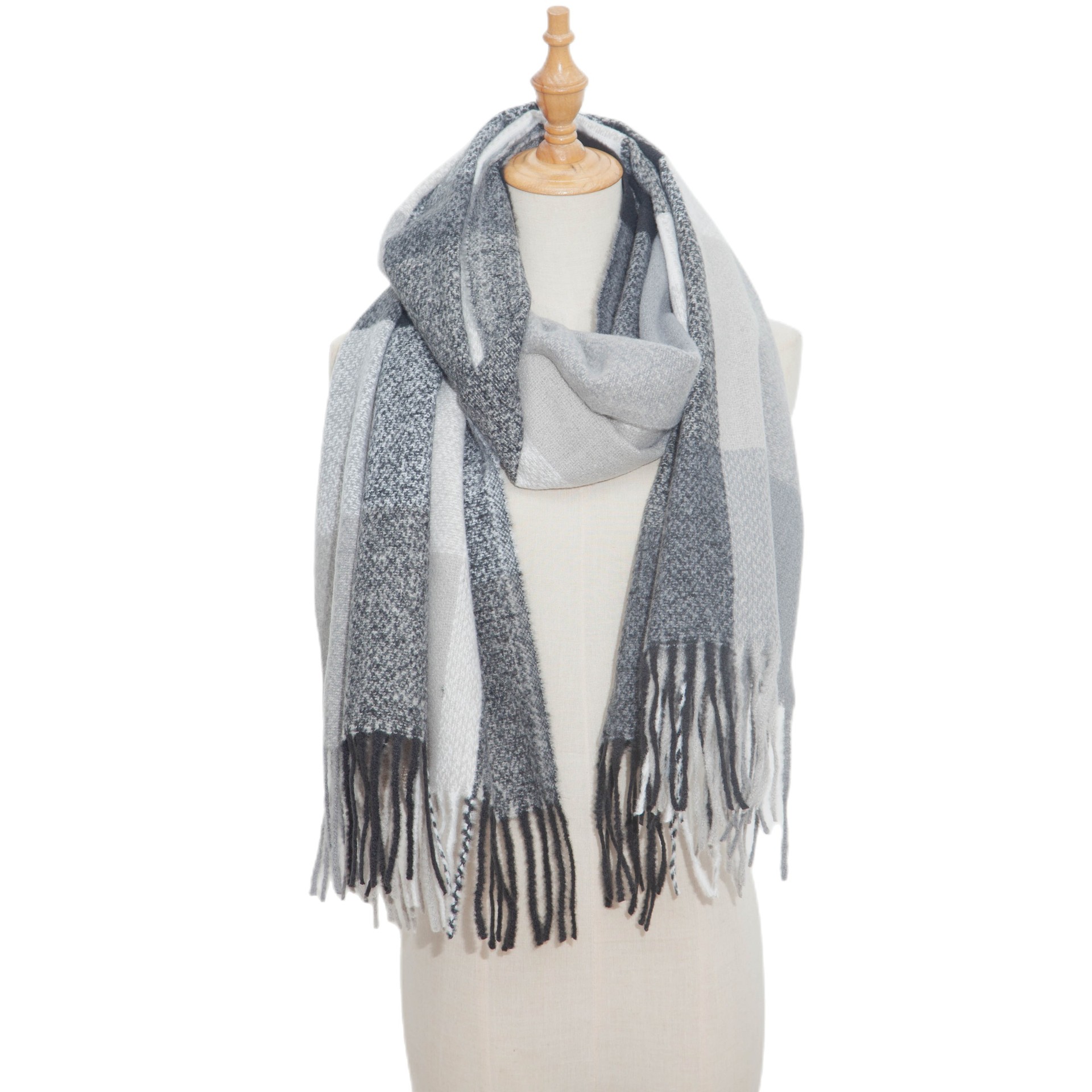 아마존 인기 체크무늬 스카프, 가을 겨울용 두꺼운 프린지 스카프, 레인보우 스카프 숄, 재고 있음, 제조업체 직판