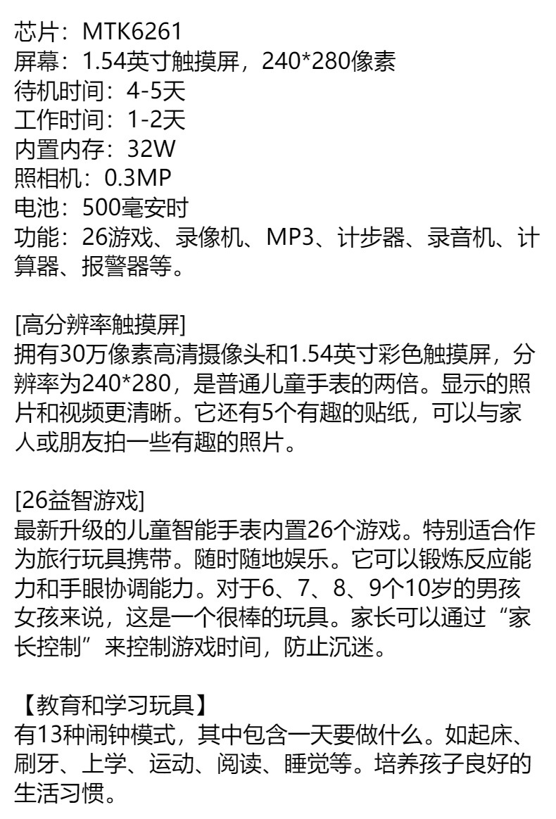 아마존 뜨거운 판매 어린이 스마트 시계 MP3 게임 음악 시계 카메라 비디오 26 게임스토어 가기