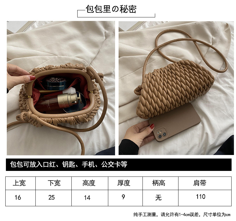 신상 한국 스타일 패션 틈새시장 크로스백 레트로 핸드백 심플 캐주얼 숄더백 여성용 수출용 주름 클라우드백