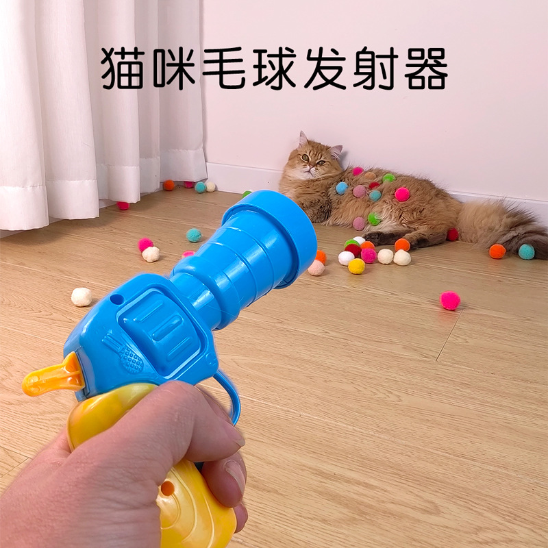 재고 도매 봉제 공 발사 총 세트 3cm 높은 탄성 폴리 에스테르 모피 공 고양이 이후 안녕 바이트 장난감 애완 동물스토어 가기