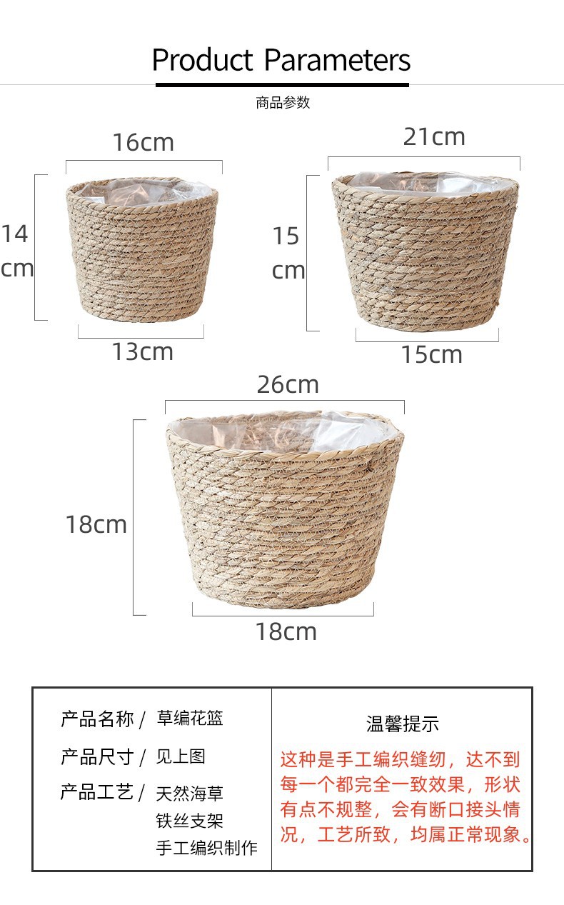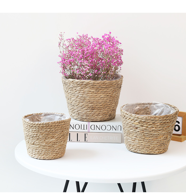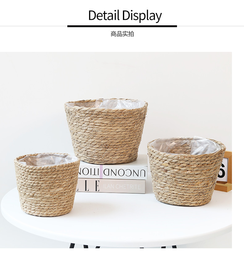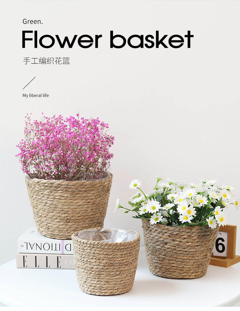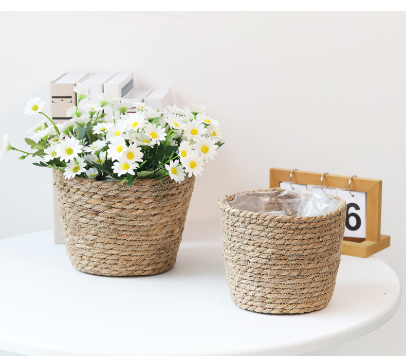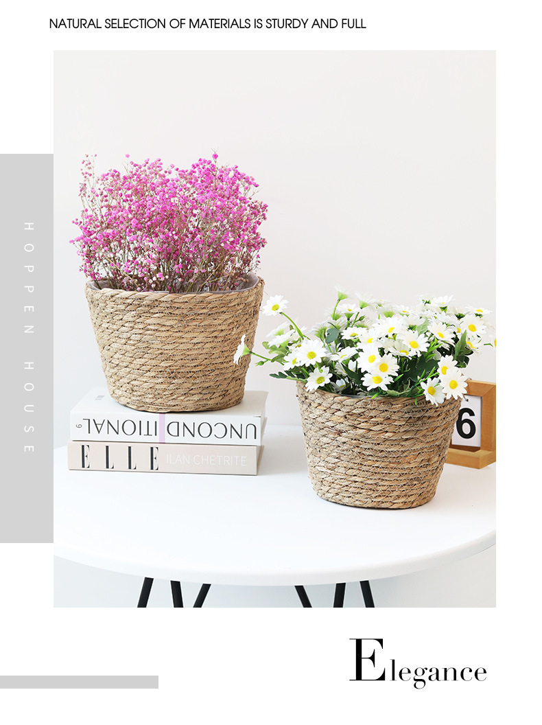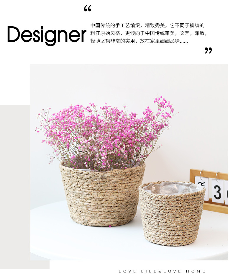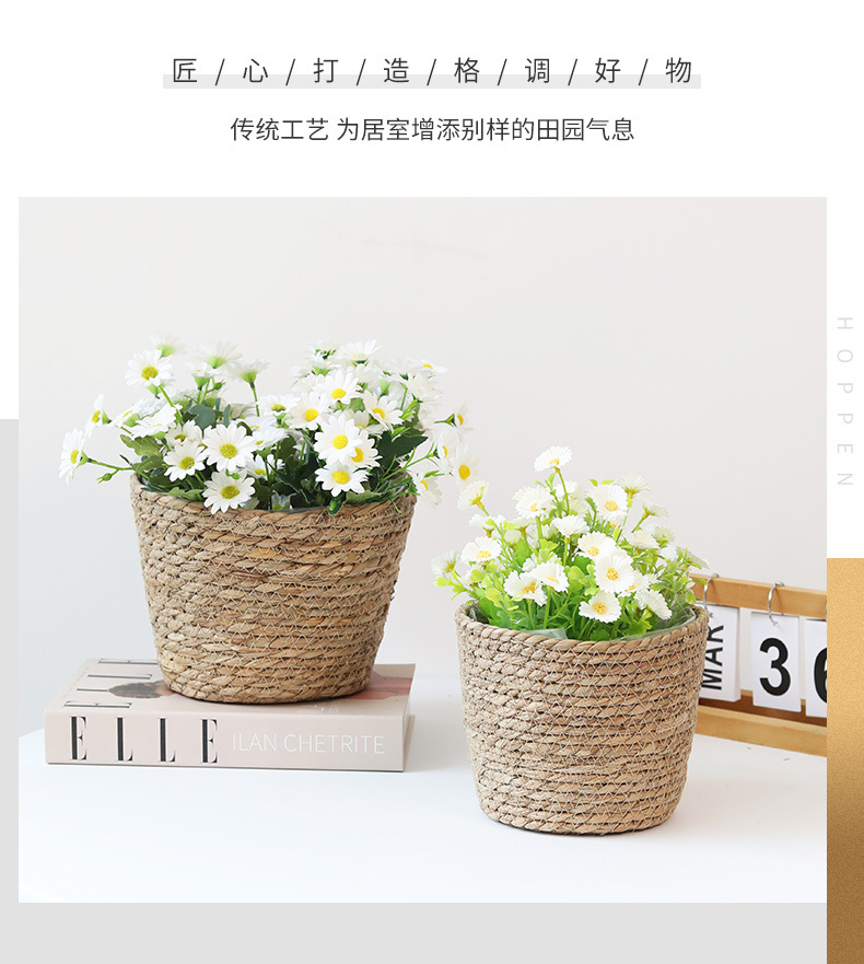 북유럽 스타일 밀짚 화분 화초 꽃 꽃 꽃 세트 짠 대나무 꽃 바구니 홈 거실 데스크탑 보관 장식품스토어 가기
