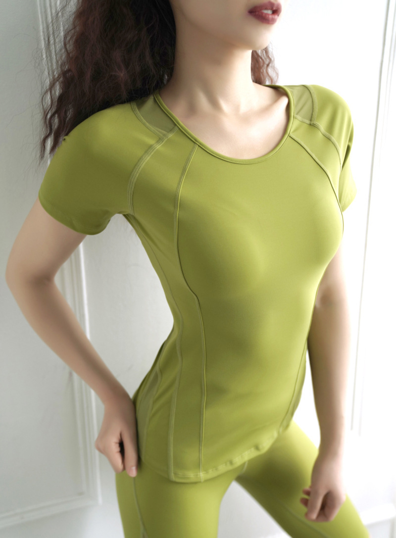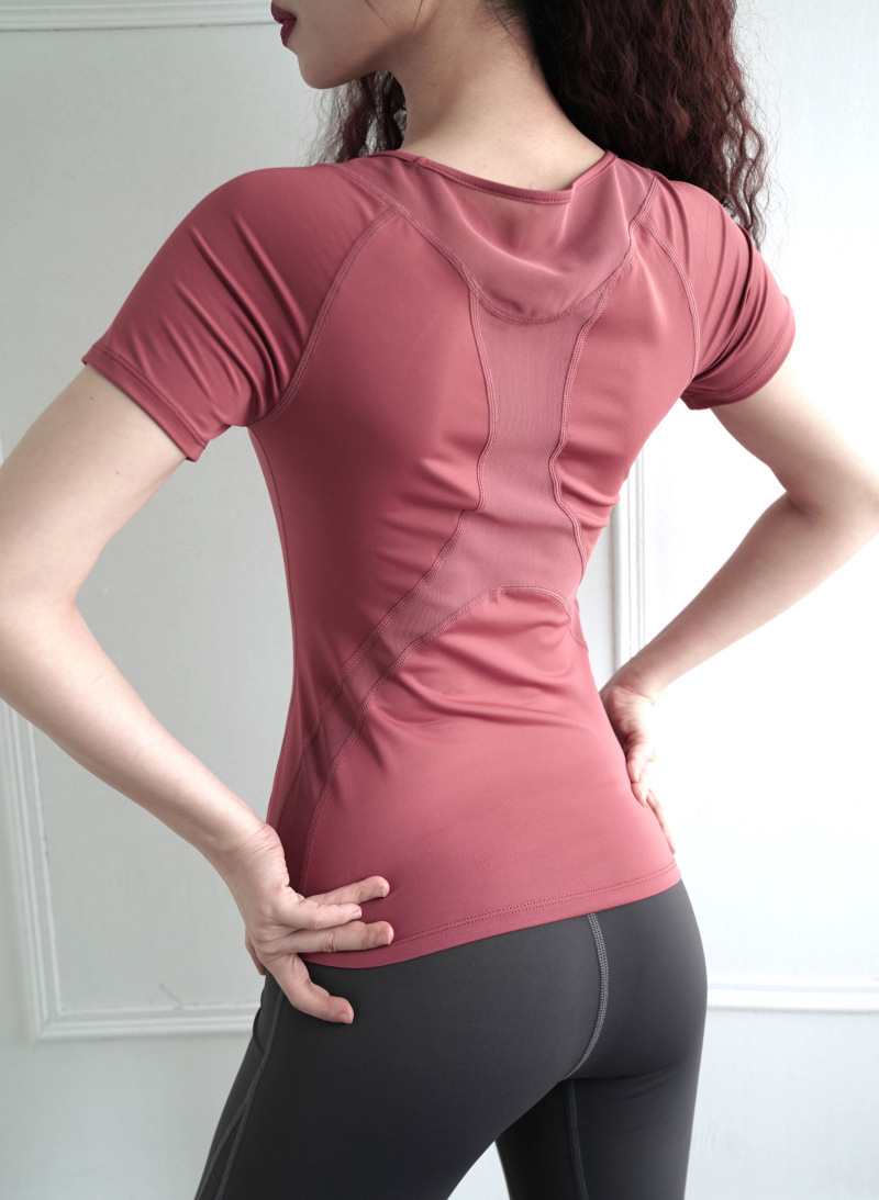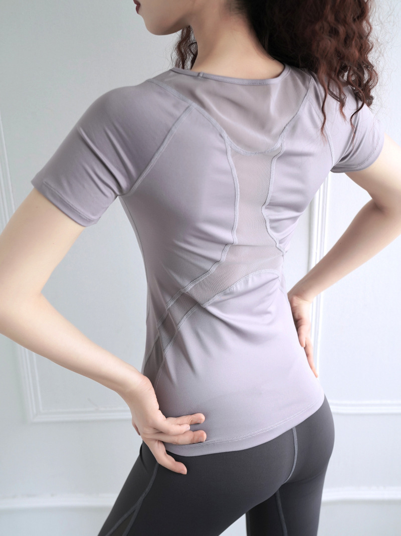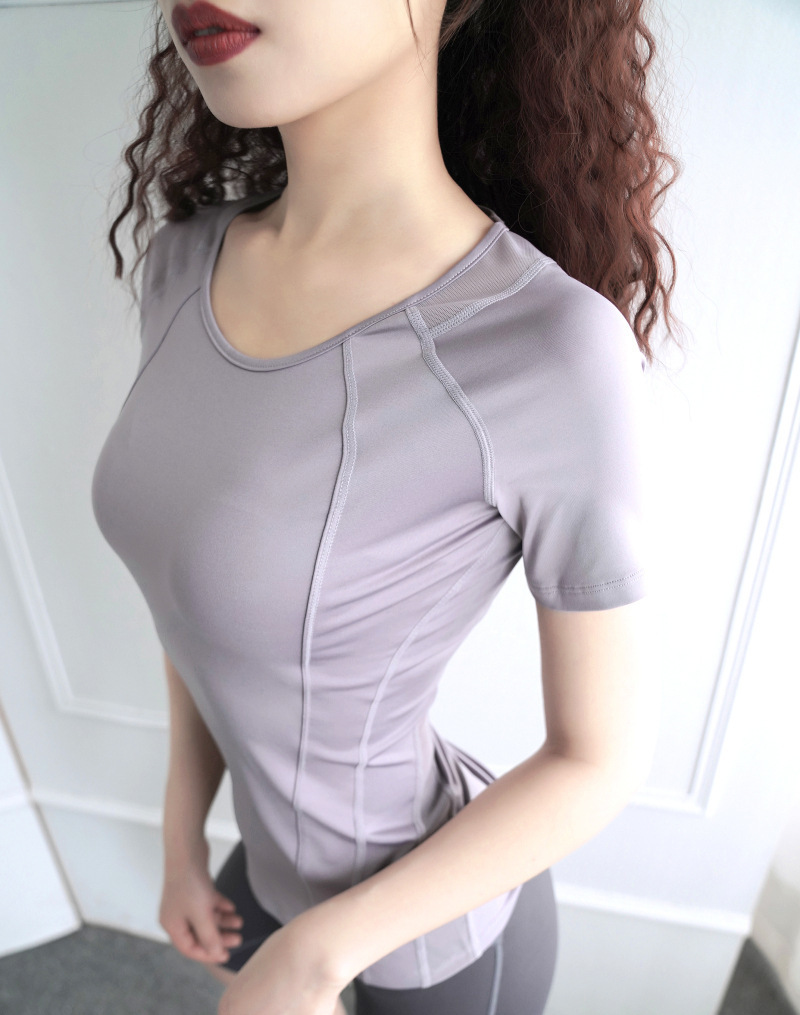 요가복 상의 여성용 얇은 반팔 티셔츠 러닝 스포츠 통기성 피트니스 운동복 속건