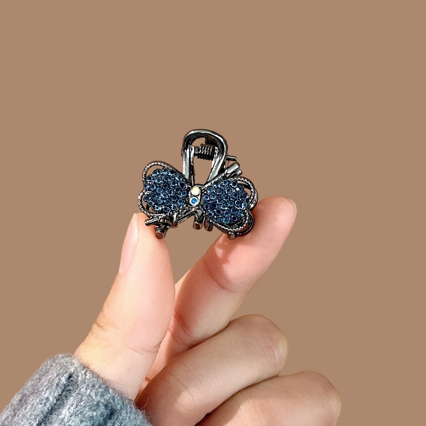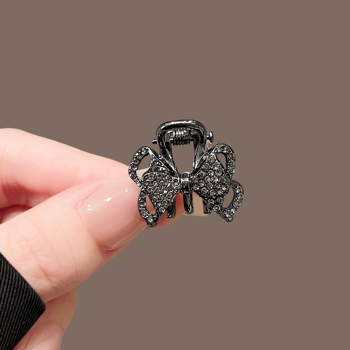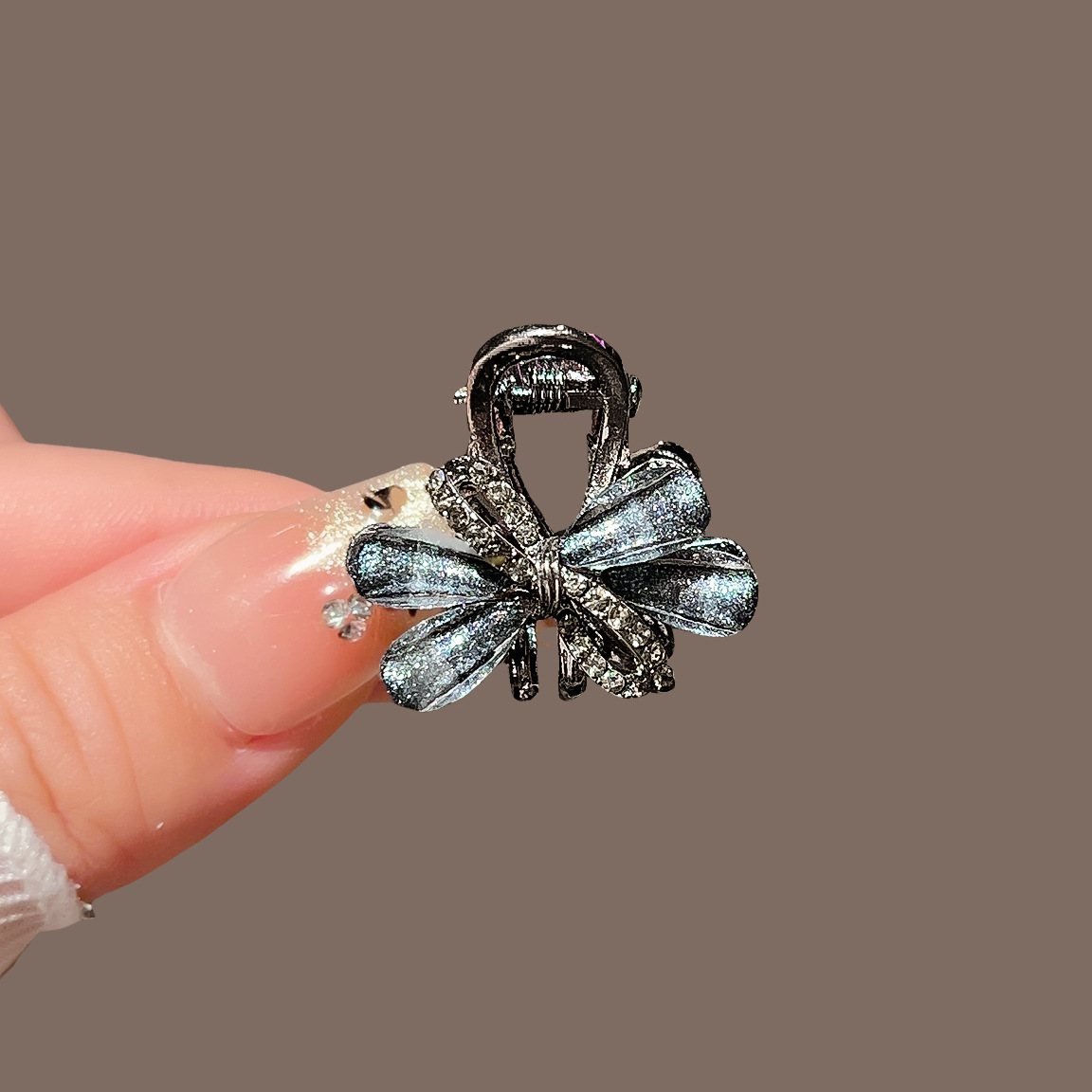 • 건메탈 블랙 레진 큐빅 나비 매듭 미니 집게핀