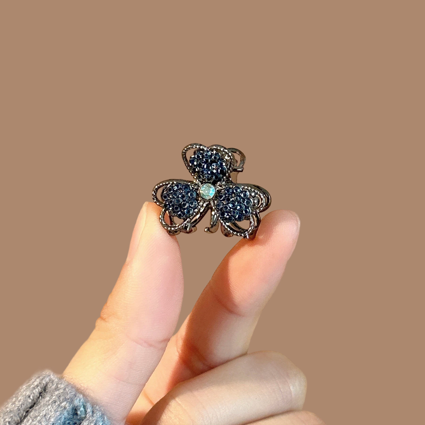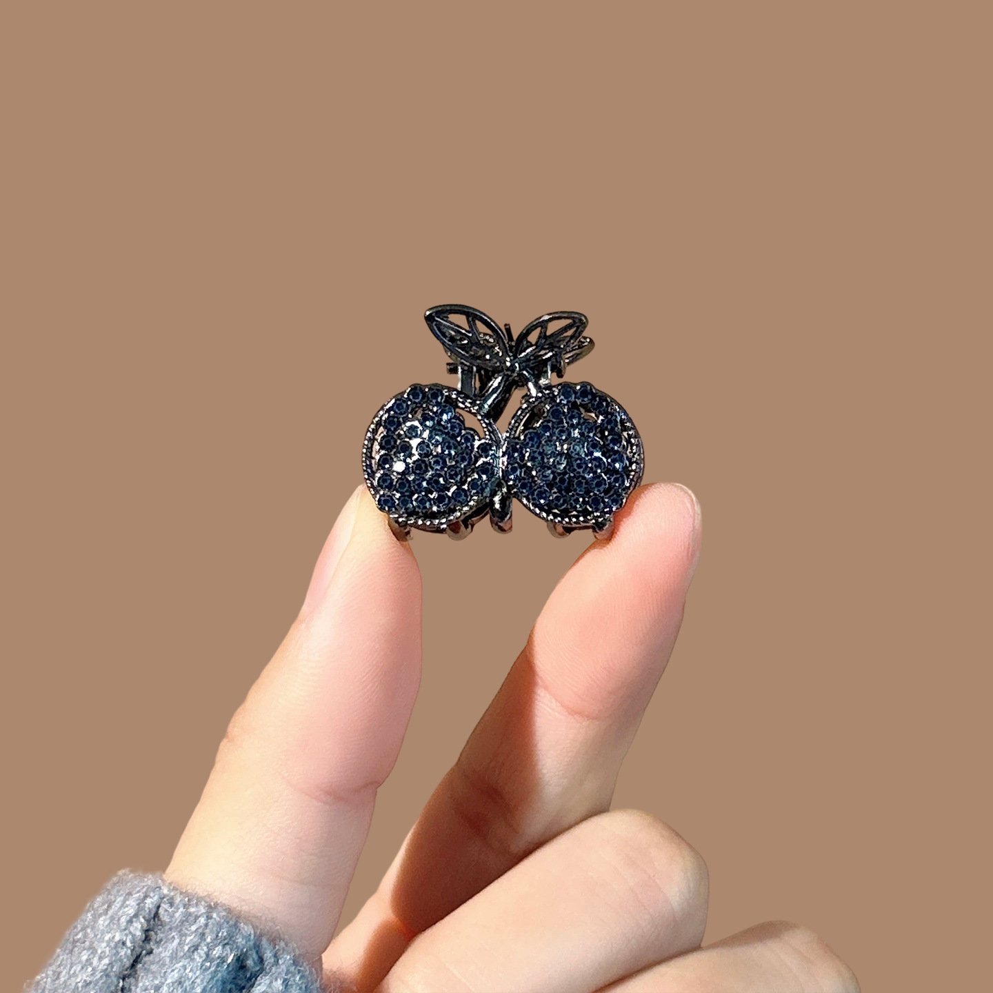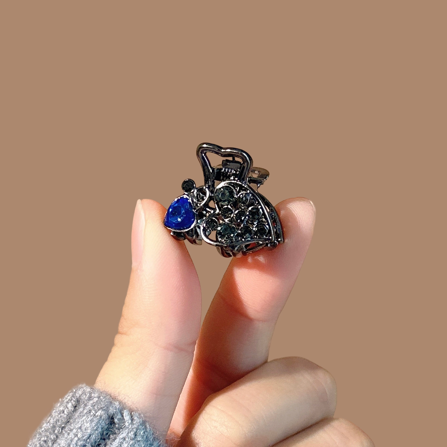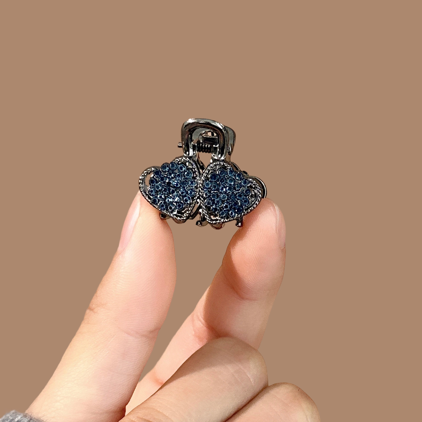 • 블랙 블루 다이아몬드 미니 집게 - 더블 하트