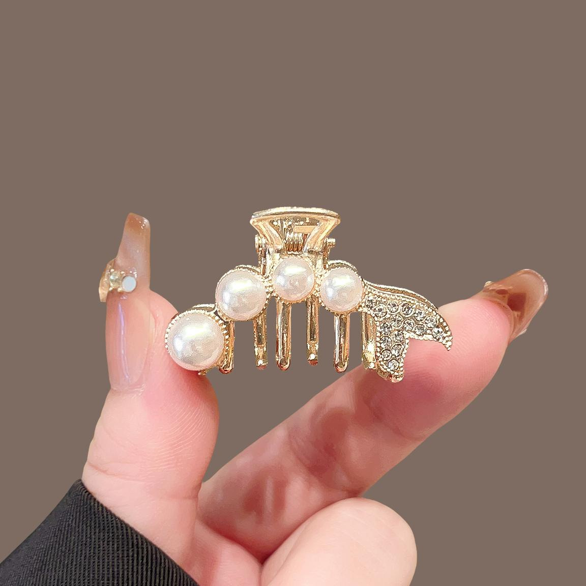 빈티지 금속 귀여운 작은 잡아 클립 라인 석 진주 높은 말꼬리 머리핀 사랑 머리핀 높은 감각 상어 클립 모자