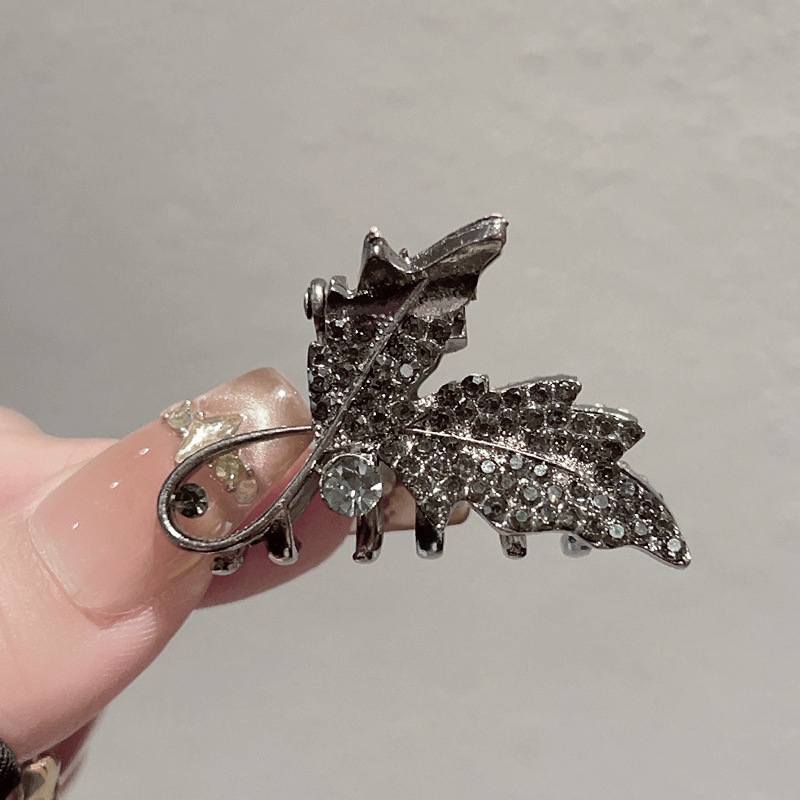 • 건메탈 블랙 크리스탈 리본 미니 집게핀
