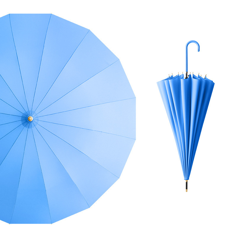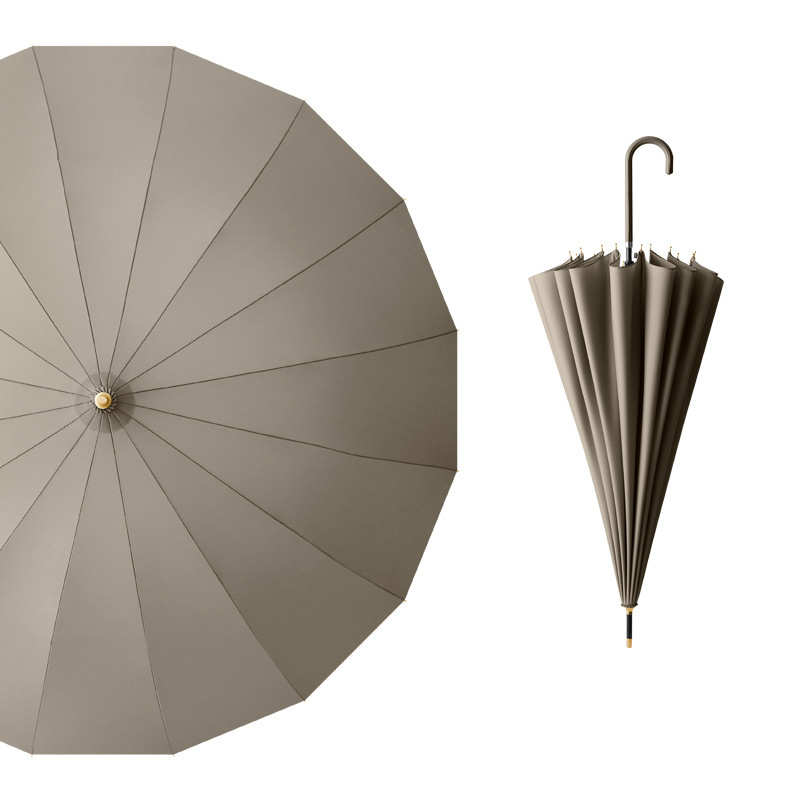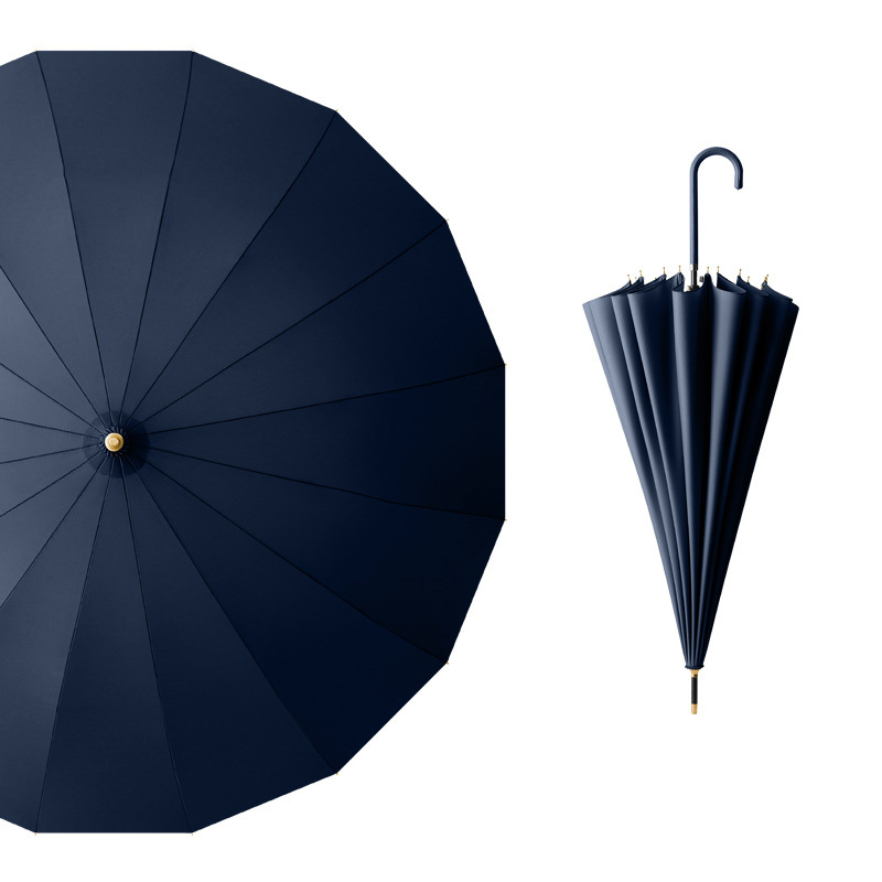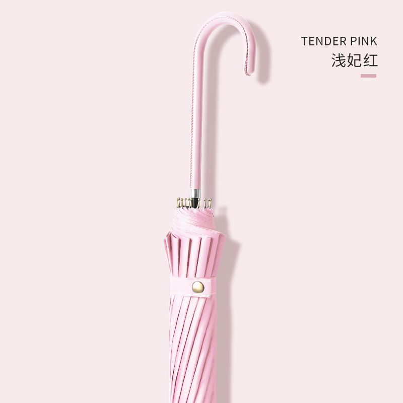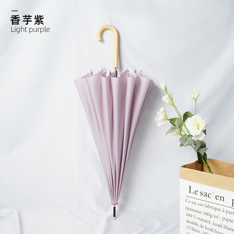 긴 손잡이 우산 16개의 뼈가 있는 가죽 곡선형 심플한 단색 자동 긴 막대 우산 로고 인쇄 가능 광고 우산 방수 도매스토어 가기