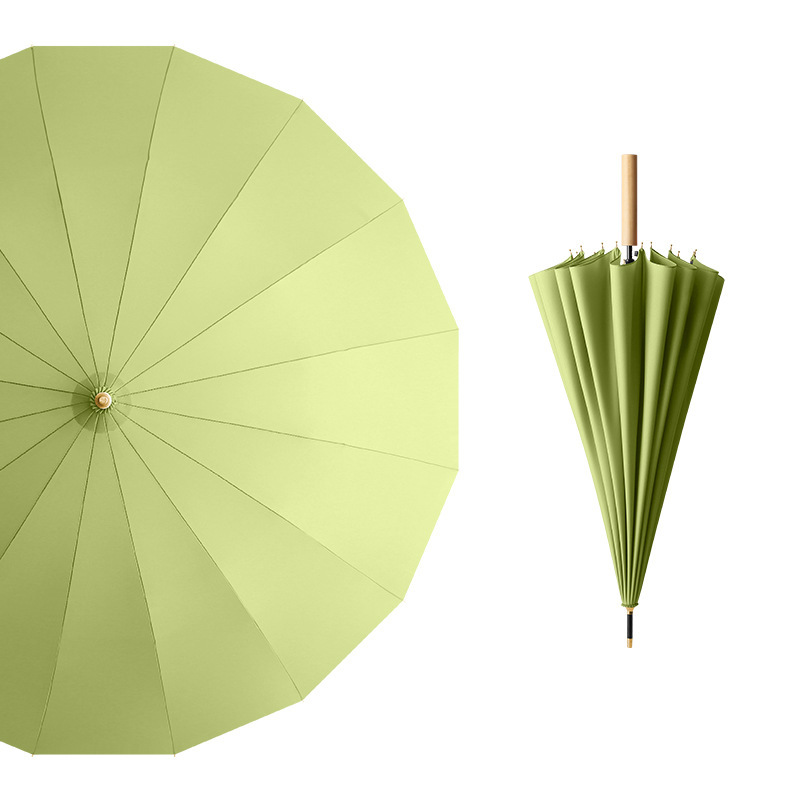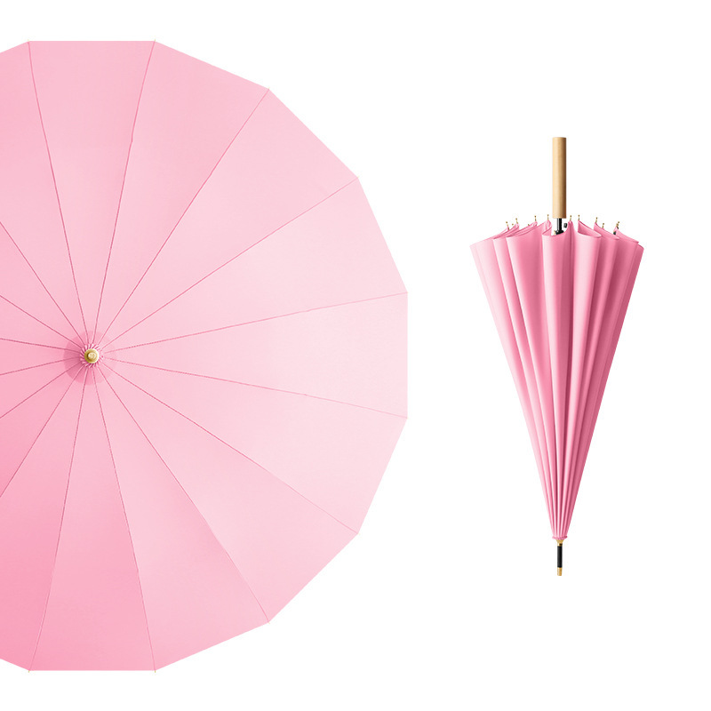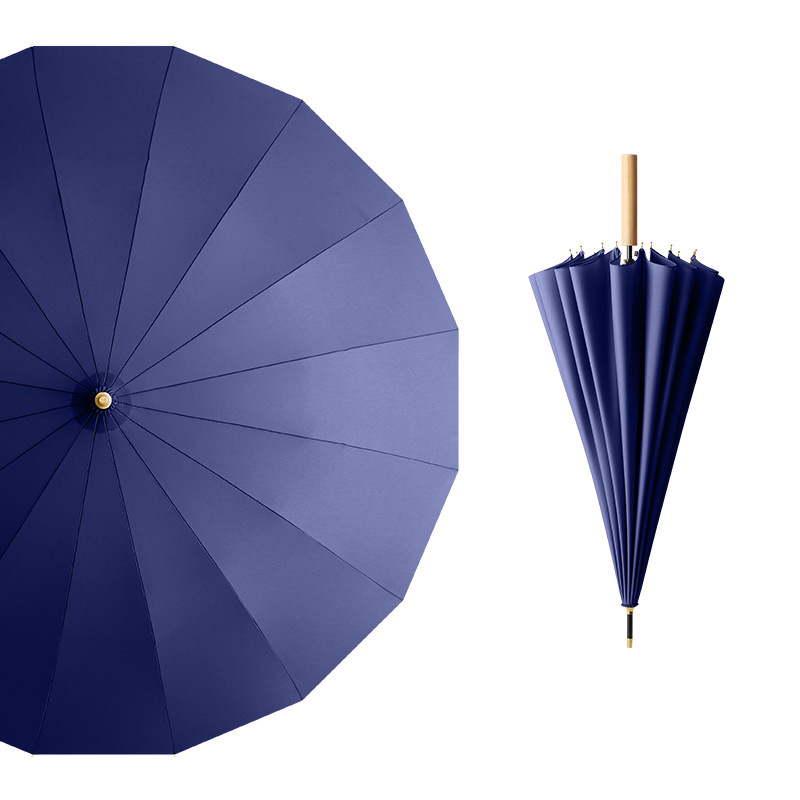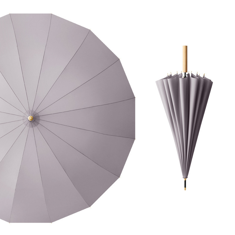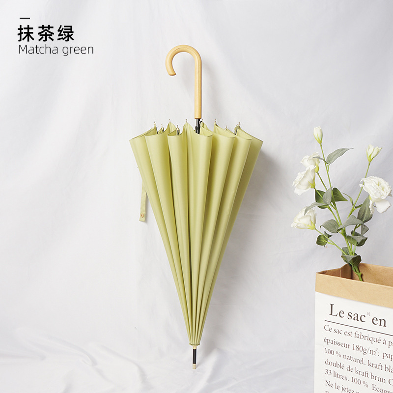 긴 손잡이 우산 16개의 뼈가 있는 가죽 곡선형 심플한 단색 자동 긴 막대 우산 로고 인쇄 가능 광고 우산 방수 도매스토어 가기