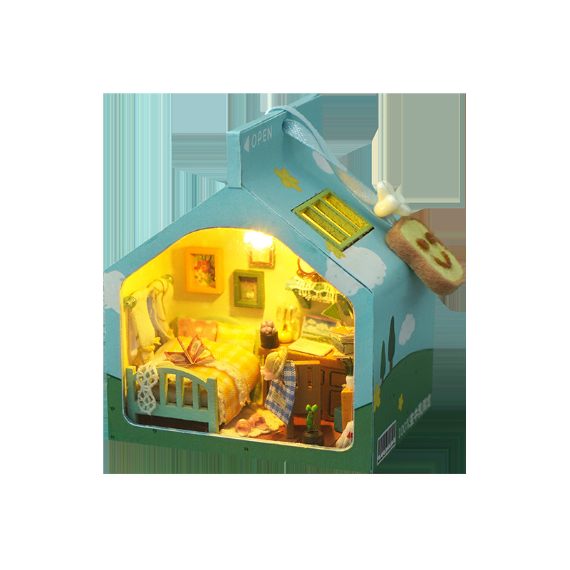 천유 DIY 작은 집 힐링 밀크박스 케이크 트레이 수제 조립 모델 장난감 생일 선물 미니어처