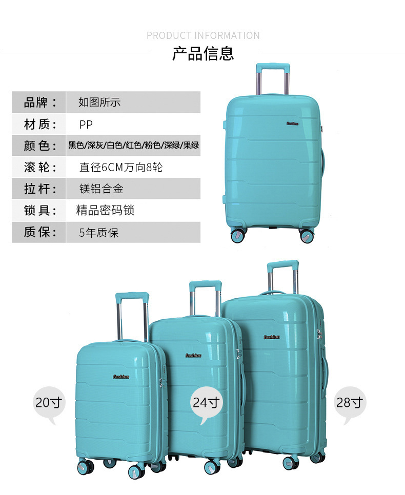 새로운 비즈니스 여행 가방 레저 여행 가방 학생 암호 상자 pp 재료 수하물 케이스 도매스토어 가기