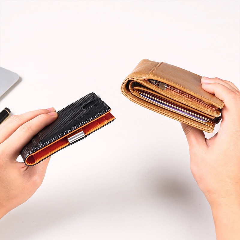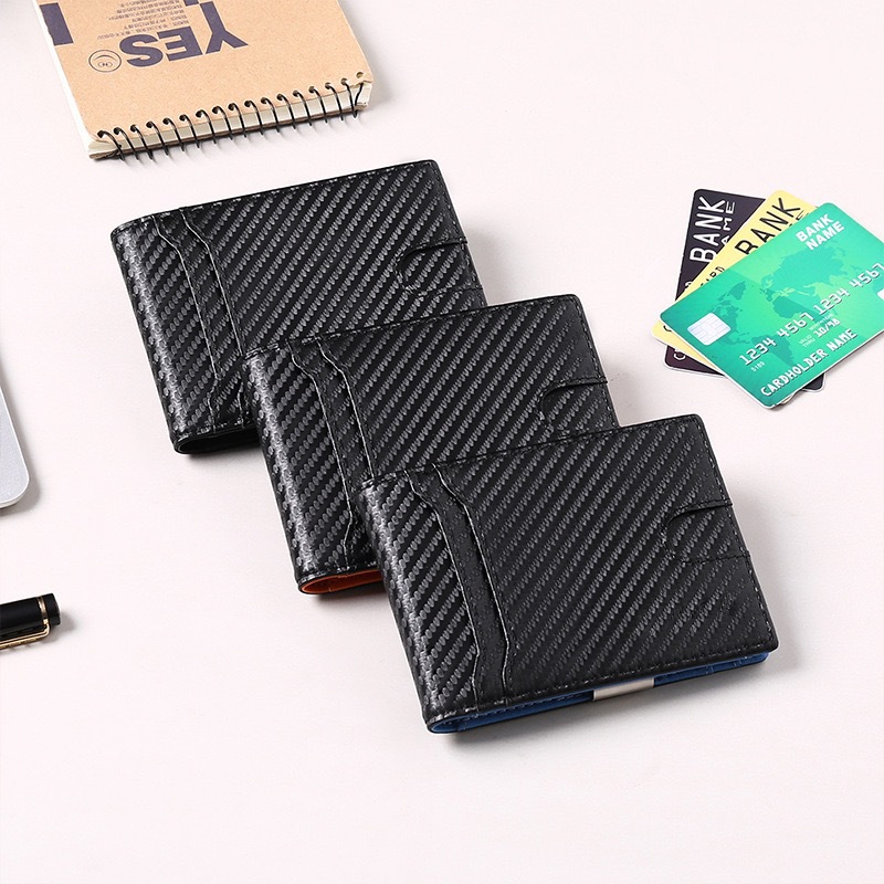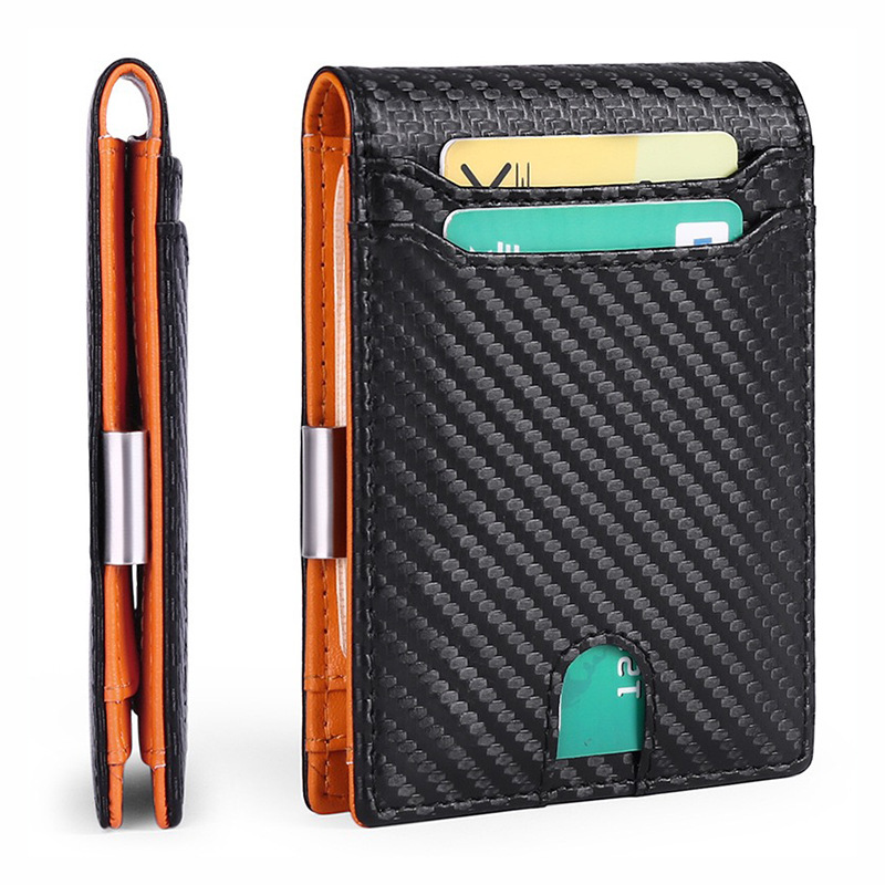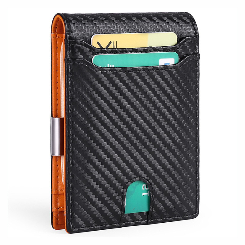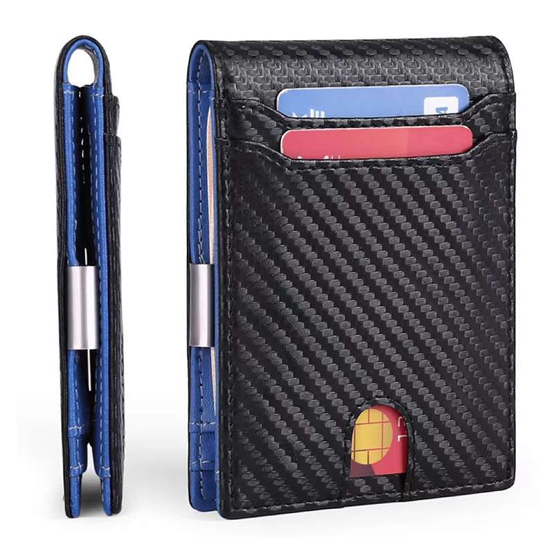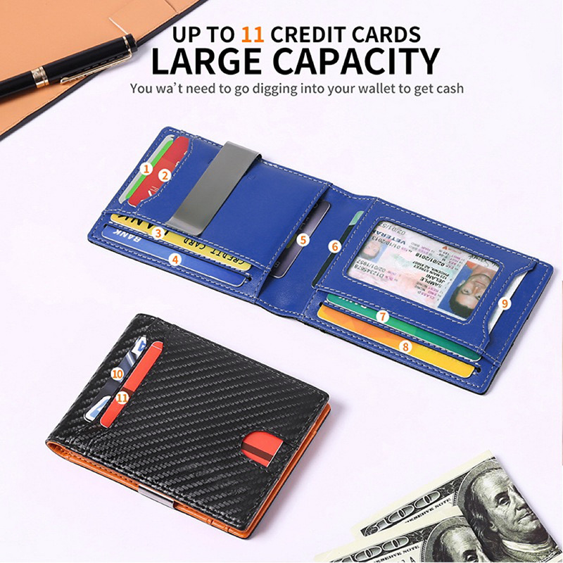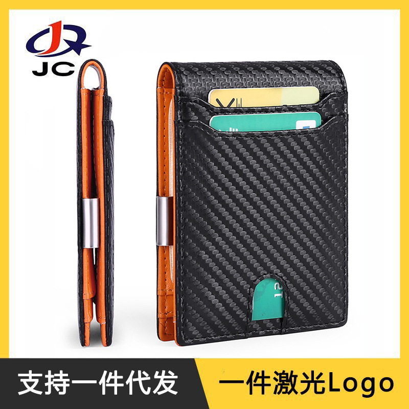 대외 무역 핫 남성용 카드 가방 RFID 도난 방지 탄소 섬유 대비 컬러 뷰티 골드 클립 대용량 멀티 카드 패션 카드 세트
