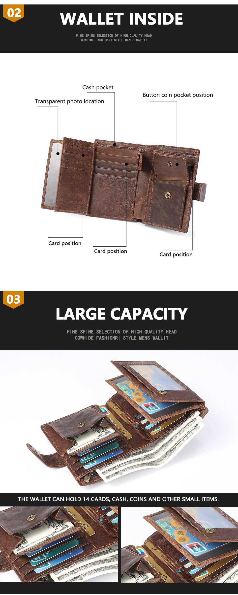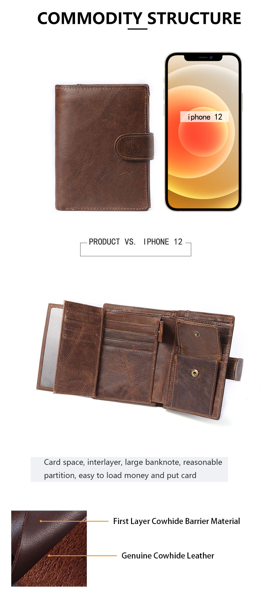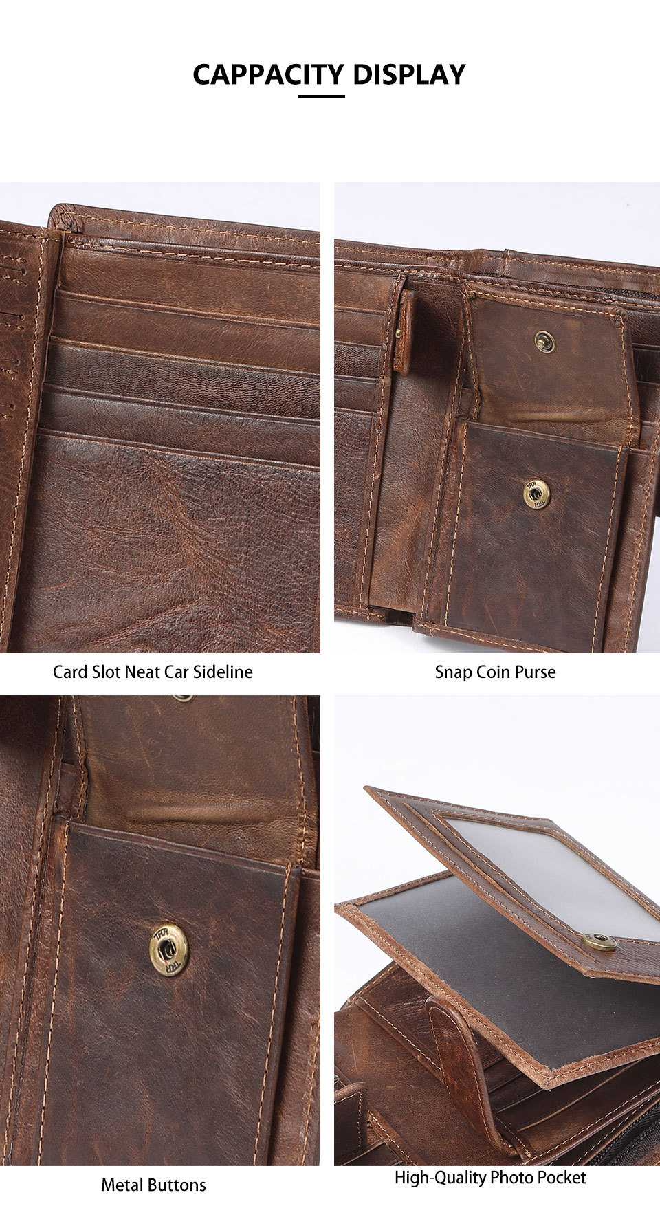국경을 넘어 인기 있는 천연 가죽 남성 지갑, 대용량 동전 지갑, 카드 지갑, 남성 가방, 레트로 스타일 가방, 다기능 클러치백스토어 가기