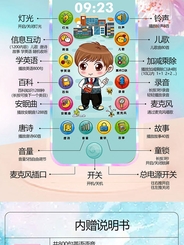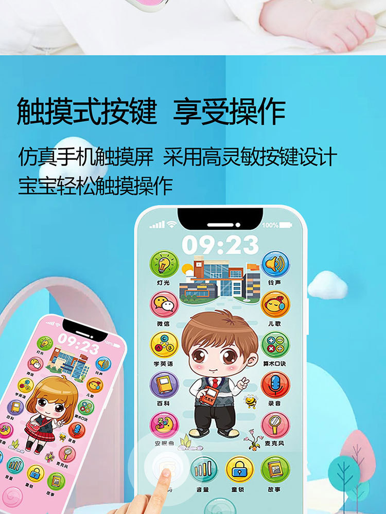 물린 아기 장난감 휴대 전화 터치 스크린 퍼즐 조기 교육 시뮬레이션 전화 모델 어린이 아기 0-3 세 소년과 소녀